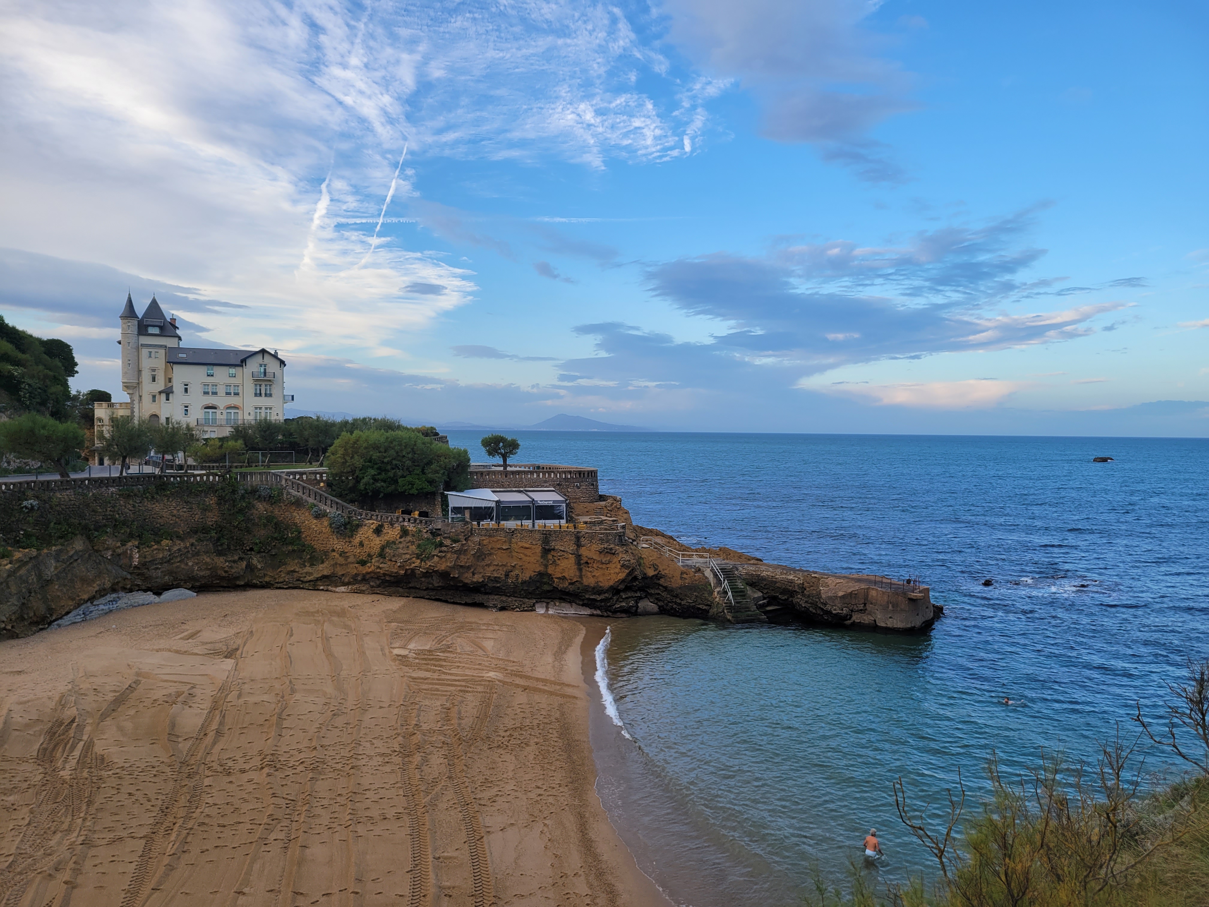 - enfin on passe devant la fameuse villa Belza pour arriver à la Côte des Basques, toujours un spectacle fascinant, que ce soit marée haute ou marée basse (dans ce cas-là on peut s’y baigner). A l’heure du coucher de soleil c’est THE spot !