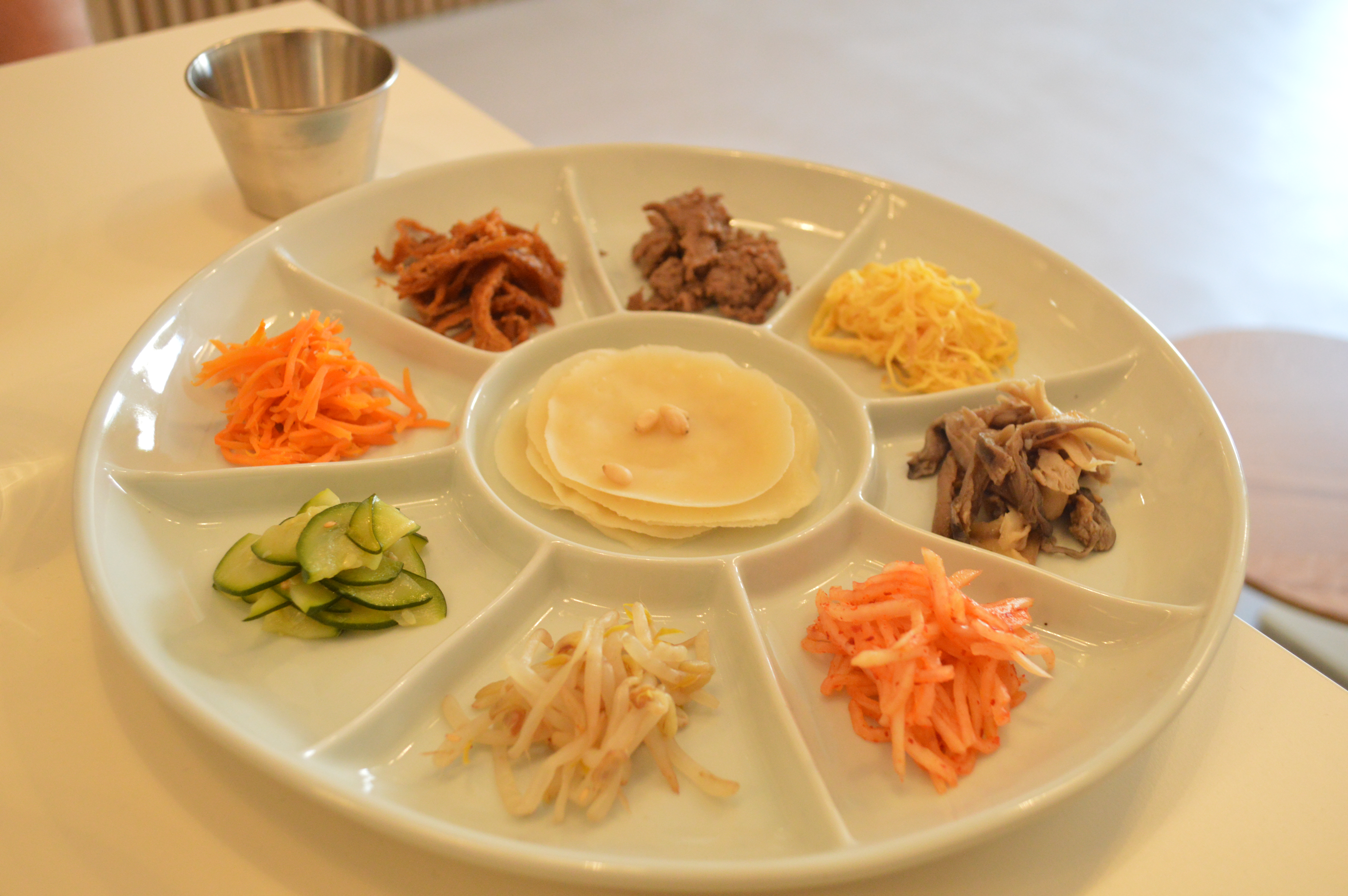 ♥ le Gujeolpan à 8€ : un joli plateau traditionnel de légumes, boeuf et galettes (avec une super sauce)… à partager, ou pas !