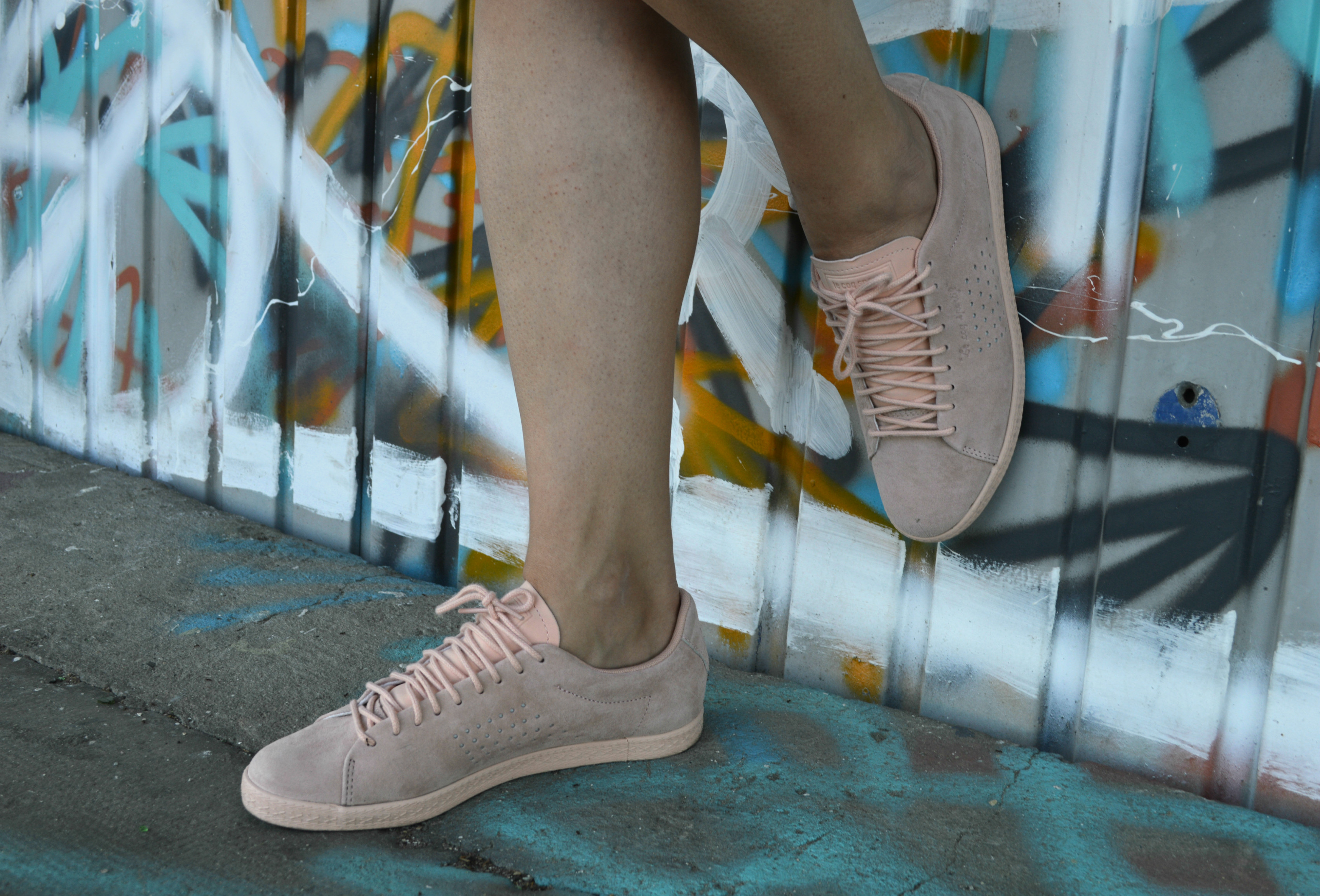 Les baskets “Charline” sont la nouveauté de la saison pour la marque française Le Coq Sportif. Fortement inspirées des Arthur Ashe, tennis iconique de la marque, les Charline en garde quelques détails (perforations, silhouette) tout en se démarquant avec notamment la semelle ton sur ton et les lacets ronds en coton. Super confortables et très féminines, mes Charline rose pastel sont mes nouvelles tennis fétiches !