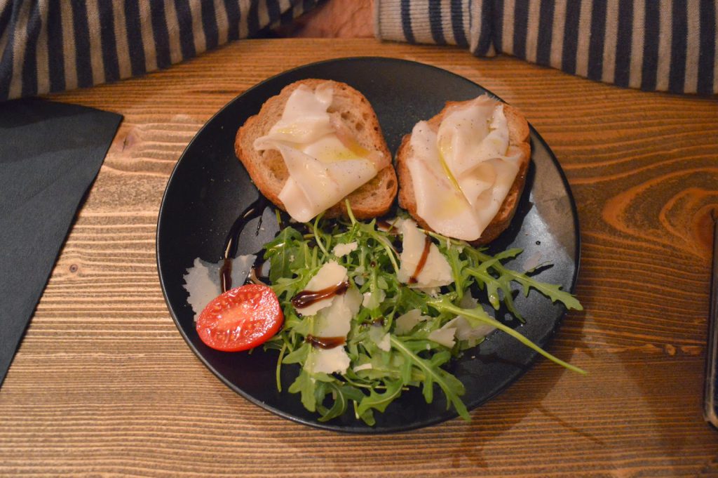 En entrée, le sandwich jambon/fromage et huile de truffe, servi toasté avec une petite salade et des copeaux de parmesan est absolument parfait.