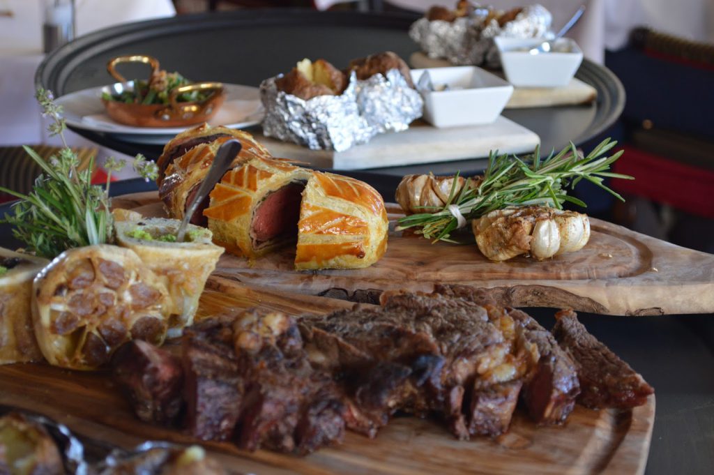 Para mi punto de vista, son tan ricos el buey Wellington y el buey d’Aubrac madurado, servido con su tuétano en croûte de hierbas y sus jacket potato (patatas robes des champs). Los amantes de carnes disfrutaran porque el buey tiene muchísimo sabor y una textura bonita.