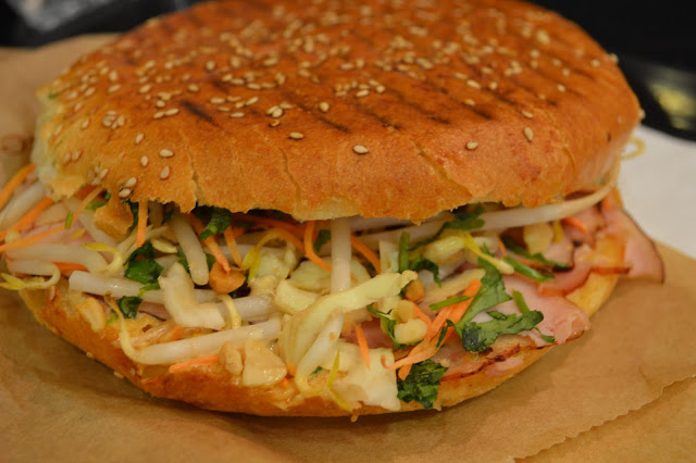 Et en effet, le Cochon, à base de rôti de porc, légumes émincés, pousses de soja, cacahuètes, coriandre et mayonnaise épicée au soja est succulent !!! Original, très frais et plein de saveurs, je vous le conseille.
