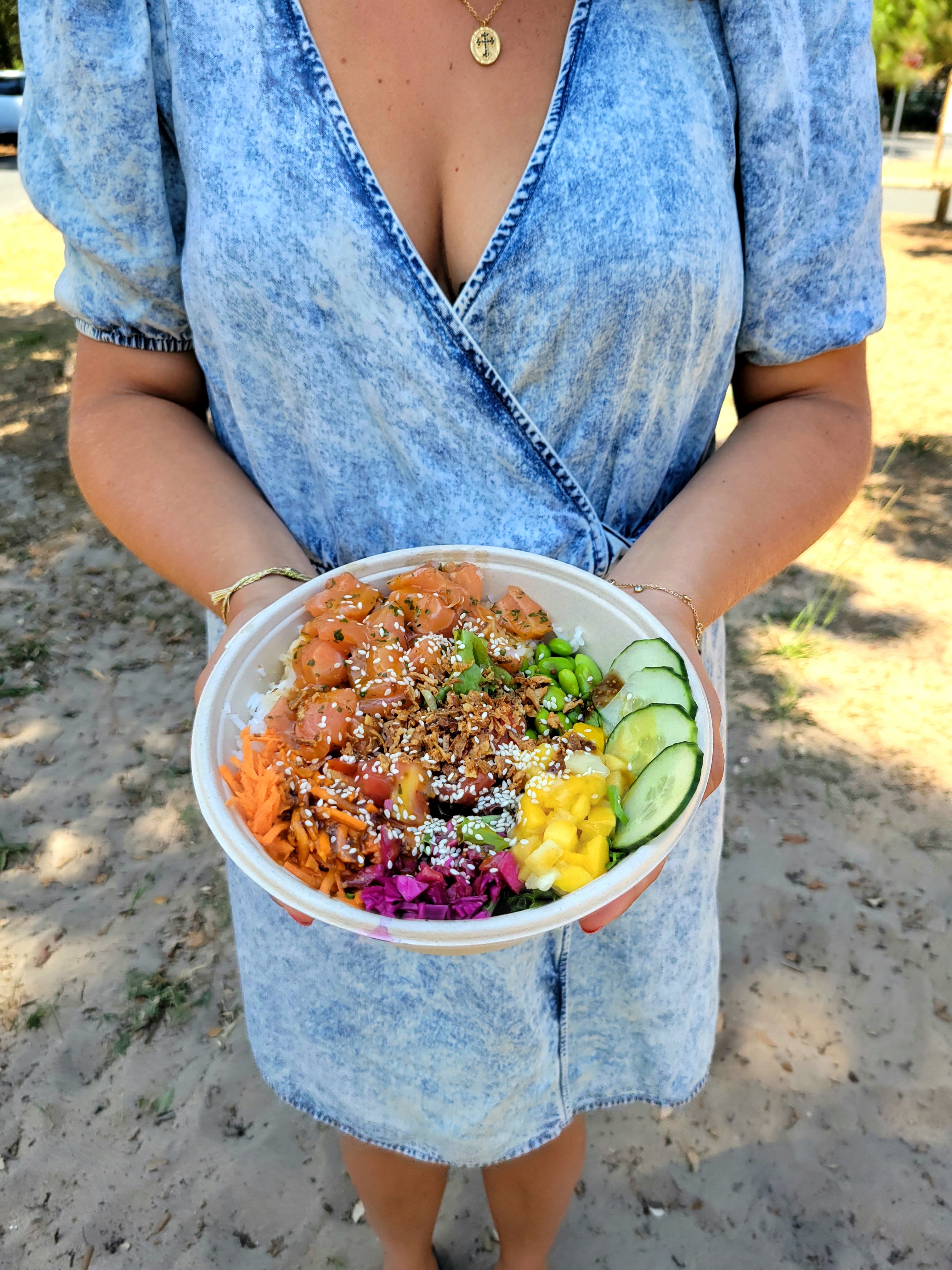Au menu : des burritos hyper copieux mais surtout des poke à base de poissons crus, ou poulet karaage (croustillant) ou tofu. Le tout agrémenté d’une multitude de légumes, épices et algues qui apportent une vraie touche d’originalité et de fraîcheur. Comptez environ 14 € pour un bowl