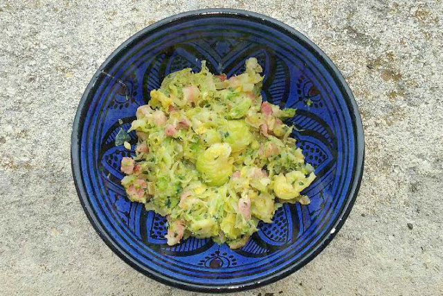 Ci-dessus, une poêlée de choux de Bruxelles aillée au porc fumé. Je n’aurais jamais acheté des choux de Bruxelles pour les cuisiner, et c’est aussi un des avantages de Cook Eat Bag : on varie son alimentation, on se laisse surprendre par des produits et des recettes qu’on n’a pas l’habitude de cuisiner !