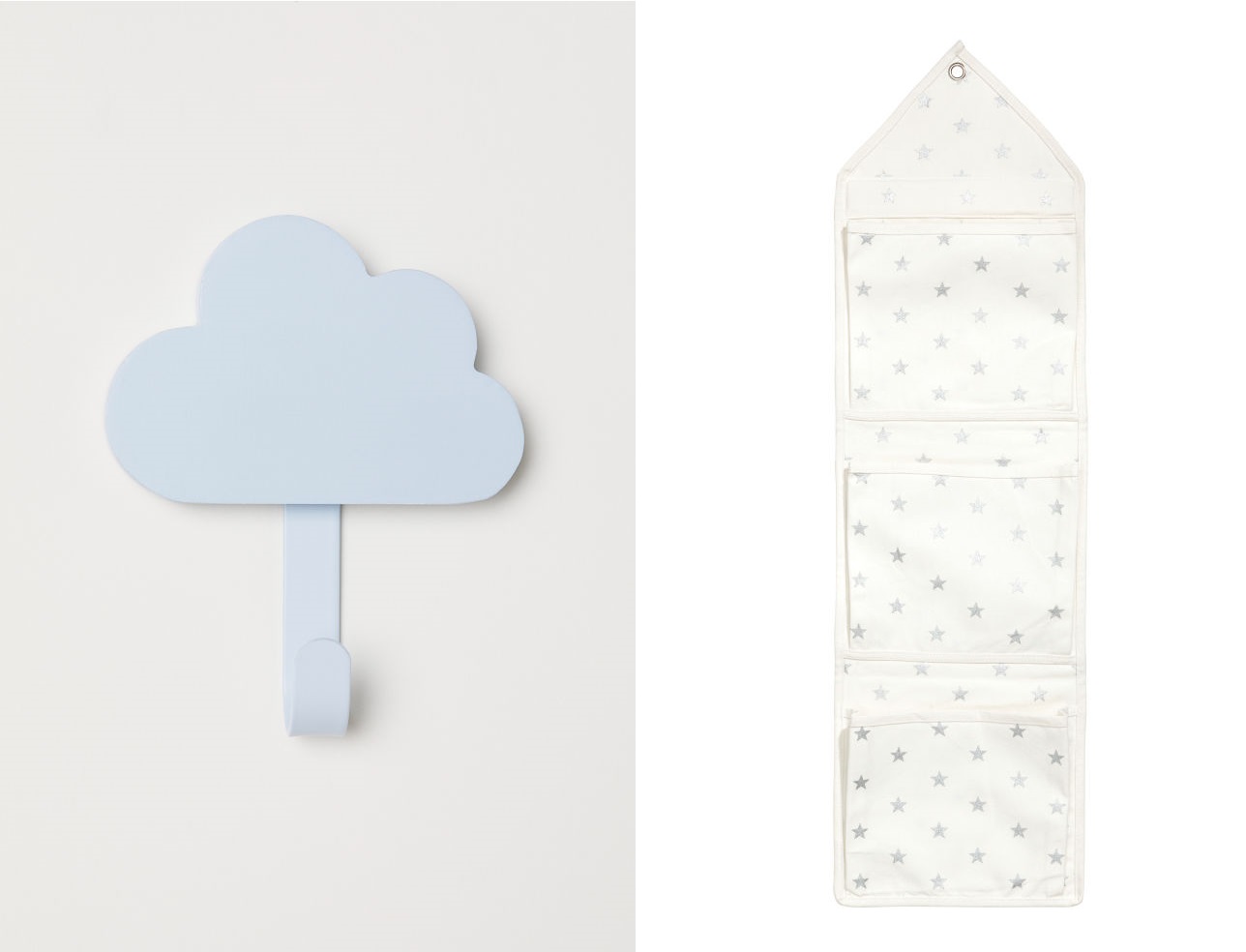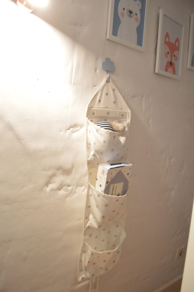 ♥ Un rangement mural en toile blanche, motifs étoiles grises
