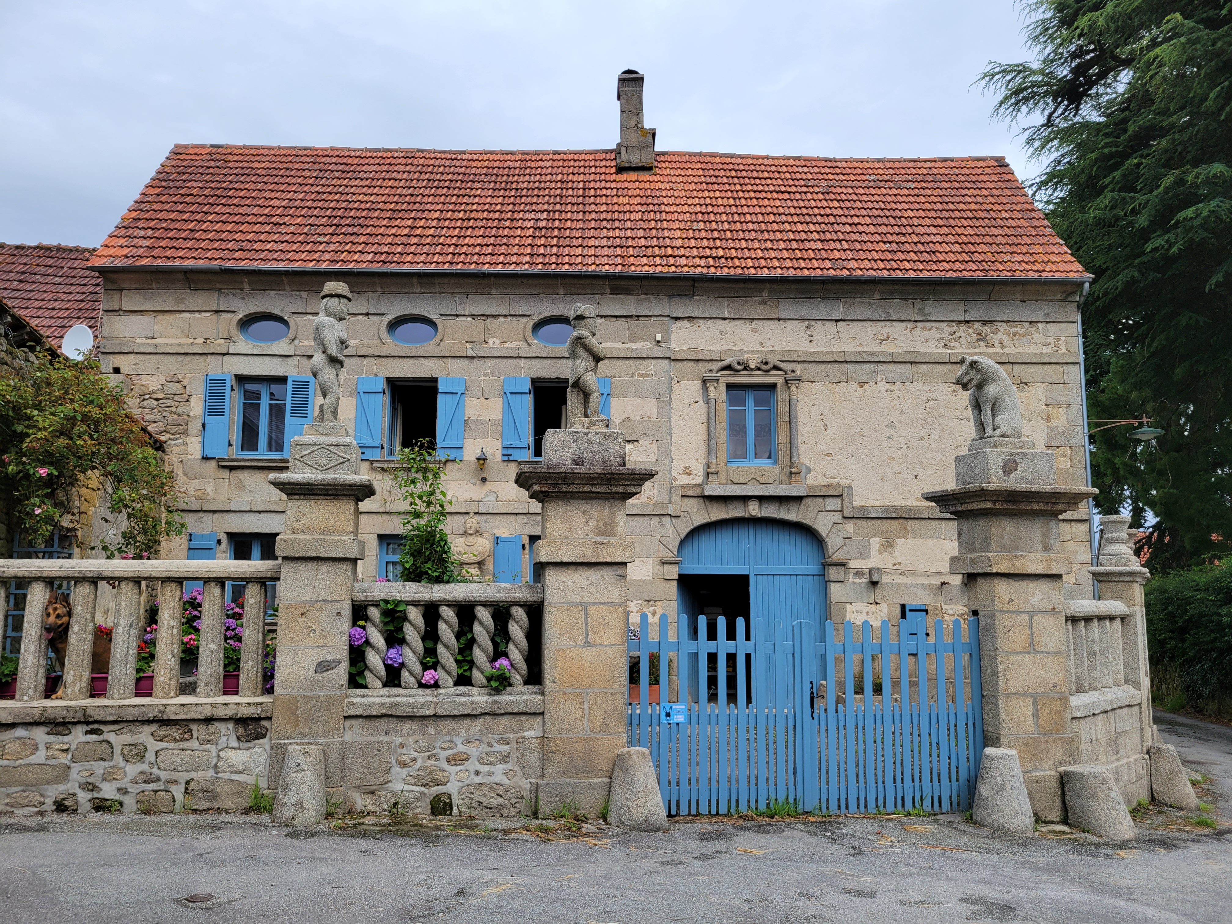 Pour la petite histoire au XIXe siècle le tailleur de pierre François Michaud, a sculpté animaux, chimères, personnages et maximes dans le granit en divers endroits du village. Avec lui l’entrée d’un potager devient une sublime porte de temple, le moindre espace domestique devient magique.