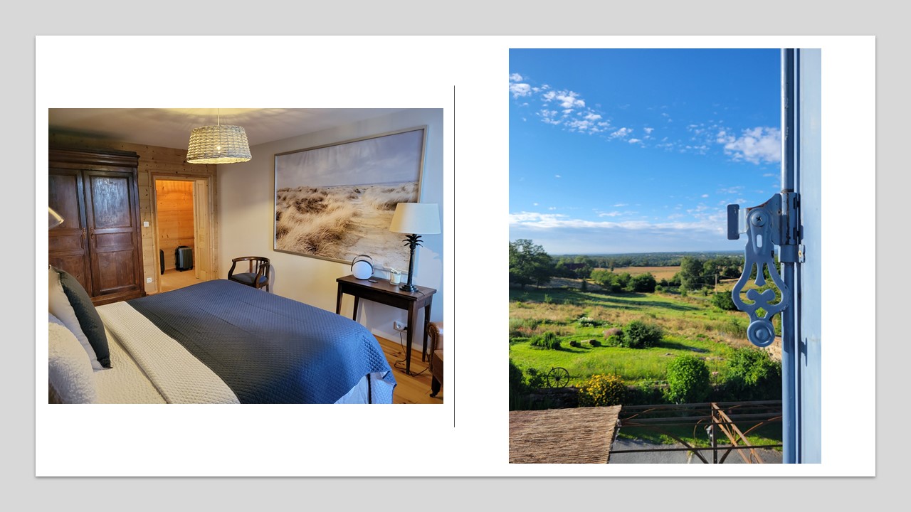 La Maison de Fleurat est un point de chute idéal pour visiter la Creuse. Judith et Julien ont quitté la Savoie pour s’installer à Domeyrot en 2019 et créer un petit havre de paix dans la campagne creusoise. La belle bâtisse dans laquelle ils nous accueillent dispose de grandes chambres, décorées avec beaucoup de goût et très confortables (ohlala ce matelas !). Autour de cette maison on découvre leur univers très nature : potager en permaculture, poulailler, prés pour les chèvres et moutons et évidemment écuries, puisque La maison de Fleurat est aussi un centre équestre et propose des stages d’équitation.