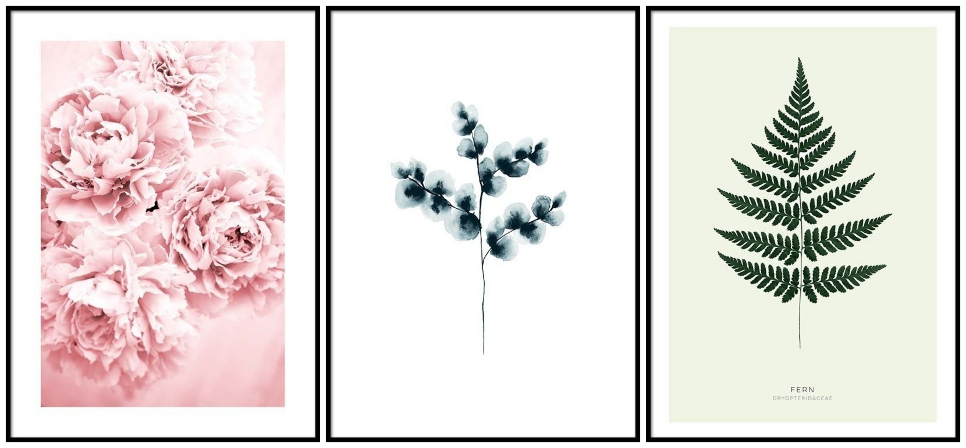 - des affiches style botanique avec dessins ou photos de cactus, plantes en tous genres, fougères, palmiers, fleurs etc.