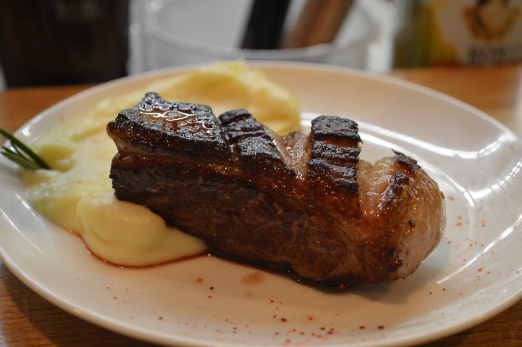 – la côte de bœuf grillée, une pièce de viande très savoureuse et tendre servie avec des frites maison (6.5 €)