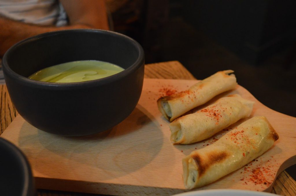 Velouté glacé petit pois et menthe, cigarettes de feta (7.50€) : un très bon mix, les cigarettes feta apportant une touche de sel et de craquant au velouté.