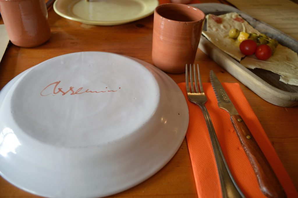 L’assiette justement, parlons-en. Déjà elle est en terre cuite. Comme votre verre. Tous deux posés sur de grandes tables en bois. Vous voyez un peu le décor? Rustique et chaleureux.