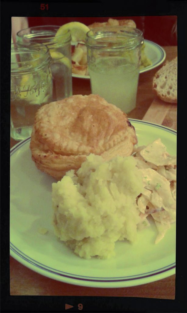 Parmi les plats proposés : des tas de salades que je testerai volontiers la prochaine fois (car prochaine fois il y aura), plat du jour hachis parmentier, ou tourtes. Nous avons choisi ces dernières (saumon aneth ou poulet poireaux), accompagnées de légumes aux choix. J’ai opté pour celle au saumon (vraiment bonne) avec une purée de pomme de terre maison et un coleslaw. C’est ce que j’appelle une “cuisine de maman” : bon, bien assaisonné, bien préparé, what else?