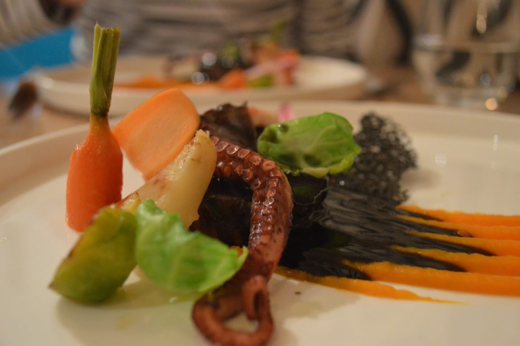 Nous nous sommes ré-ga-lés ! Grégoire Rousseau prend un réel plaisir à valoriser des ingrédients oubliés ou méconnus (vous connaissiez l’agapanthe-ail ? et le cresson alénois?!) mais aussi à proposer des associations audacieuses telles que ce trio complètement dingue veau-réglisse-poulpe !!! Chapeau chef !