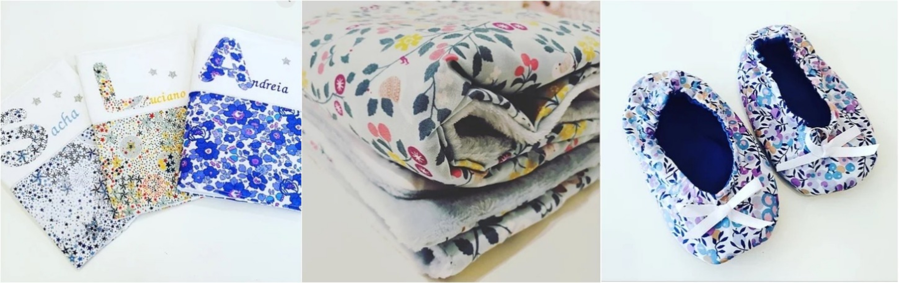 Julie est spécialiste des créations en tissus pour petits et grands, avec comme marque de fabrique le tissu liberty. Protège carnets de santé, anneau de dentition, tour de lit, couverture, chaussons ou encore guirlande déco, sa boutique regorge de pépites handmade.