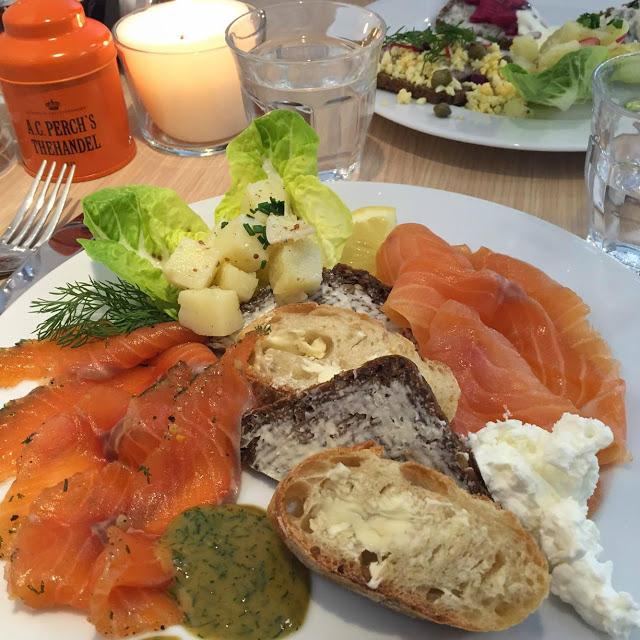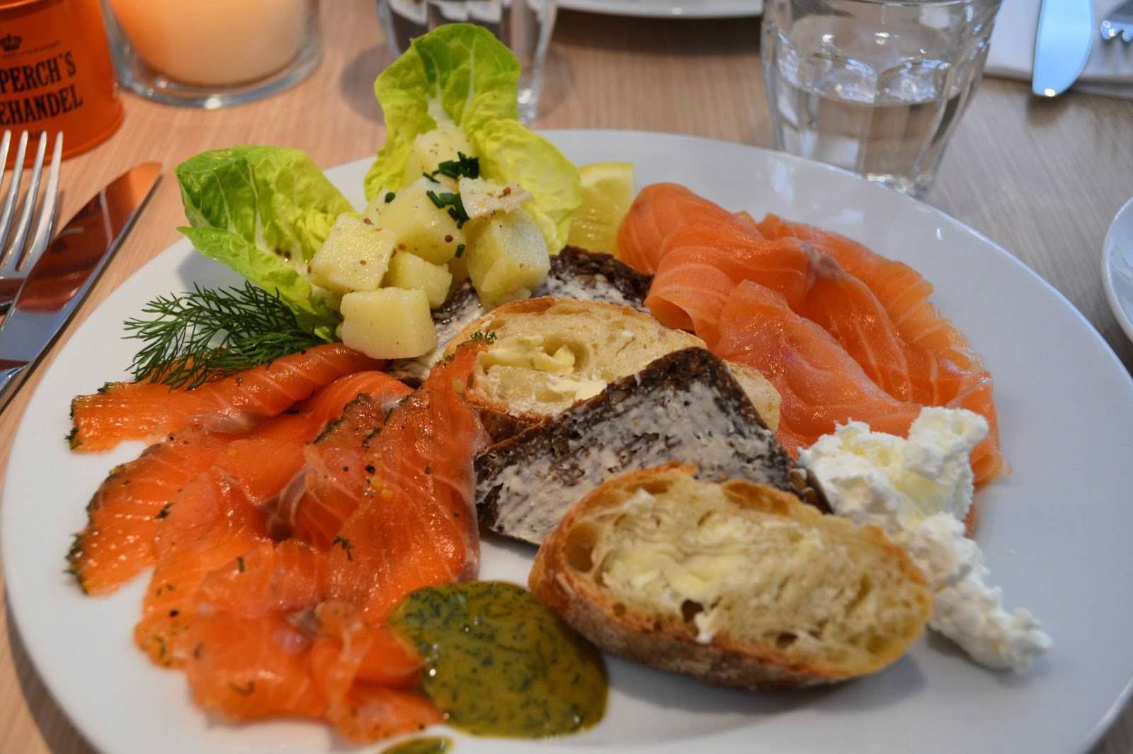 Puis on entre dans le vif du sujet avec un plat typiquement danois, le Smørrebrød (prononcez smeurbreu), une tartine traditionnelle de pain beurré. On la sert avec au choix, du saumon, du hareng mariné, du pâté de foie ou encore du fromage frais. En grande fan de saumon je choisis l’assiette de dégustation de 2 saumons à 9.95€ avec saumon fumé et gravlax. Un délice !