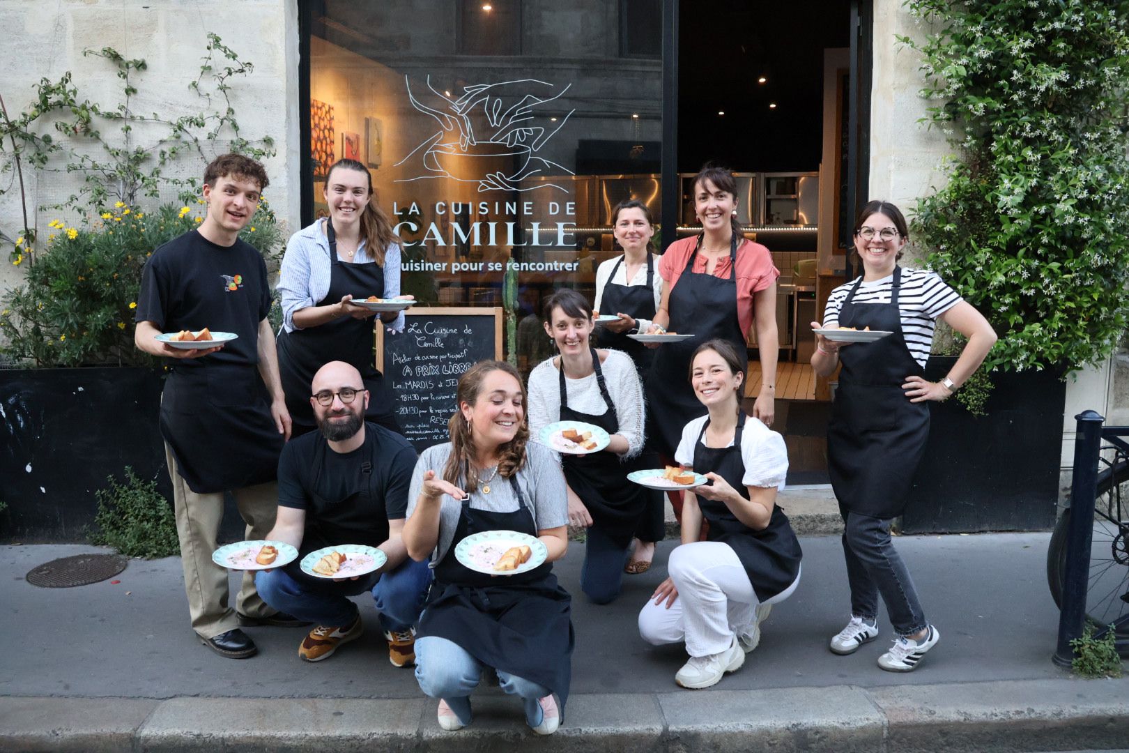 La cuisine de Camille est une association parrainée par Vivien Durand (excusez du peu) qui a pour mission de favoriser le lien social, de créer des solidarités et de sensibiliser à la santé autour de l’alimentation avec une cuisine locale, végétarienne, de saison.