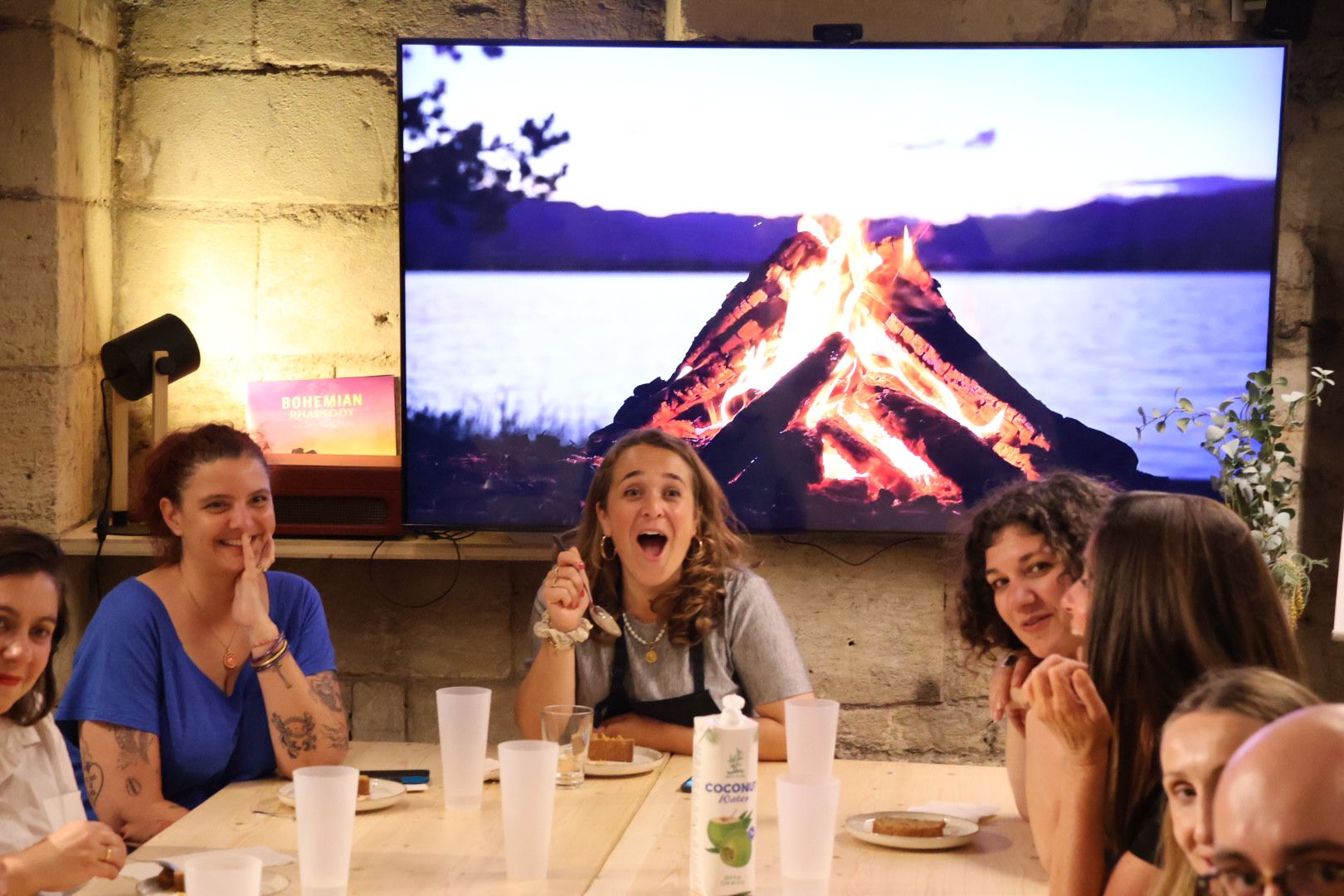 Je trouve ça génial ! Et d’ailleurs j’ai moi-même testé un atelier avec une quinzaine d’abonnés et l’adorable Amaury, qui s’occupe du lieu depuis un an. Et on a tous trouvé ce moment fabuleux : on commence sans se connaître, et la réalisation des recettes fait le reste, ça créé du lien automatiquement. On rigole, on se taquine, on fait la compétition entre l’équipe chargée de l’entrée et celle chargée du dessert, on s’entraide et ensuite on prolonge ce moment de partage autour d’une grande table.
