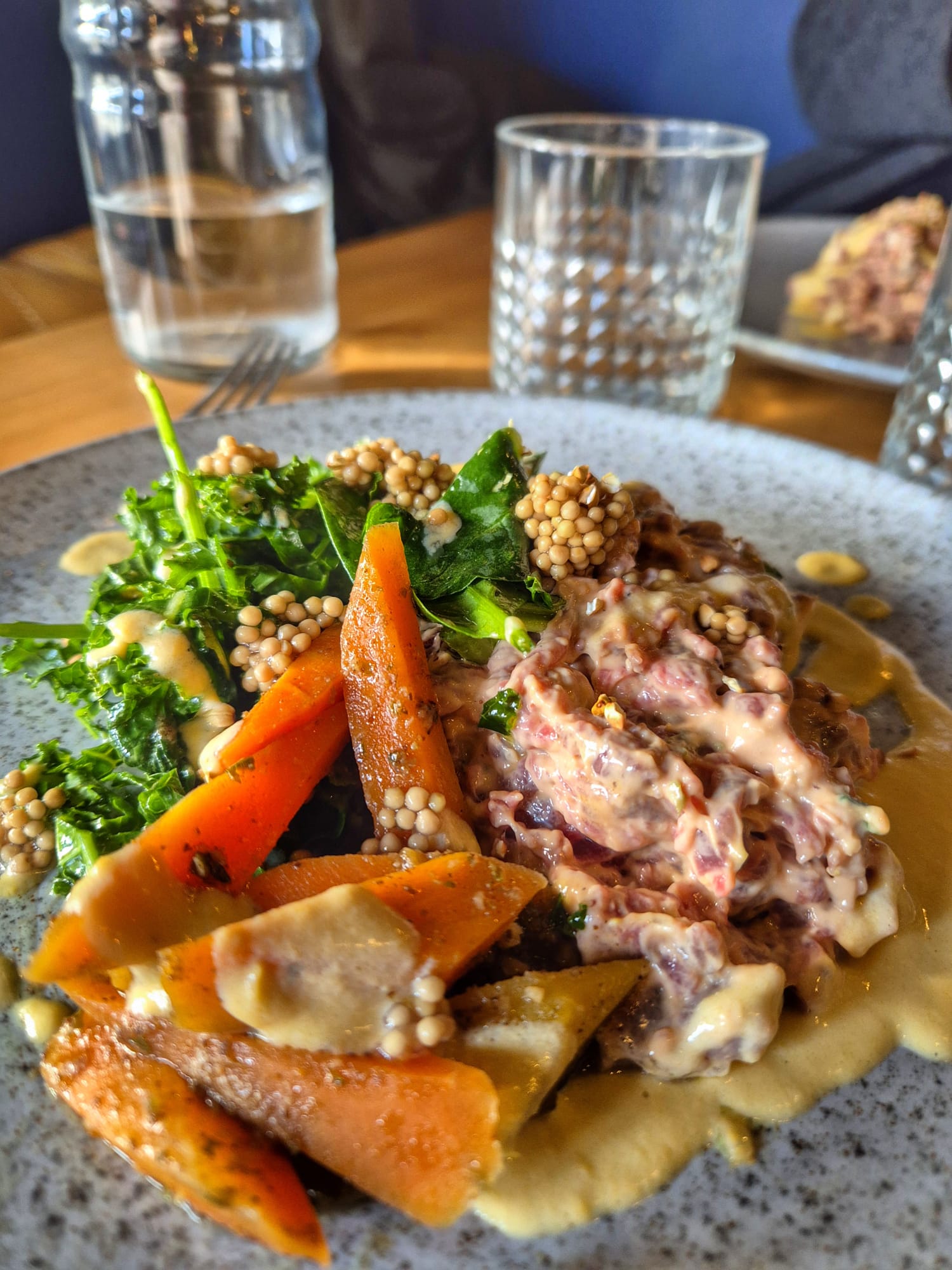 Et puis l’accompagnement, chou kale, carottes et pommes de terre au cumin, apportent une touche de croquant. Bref c’est un plat de haut-vol (pour 16 euros en plat unique je le rappelle hein).