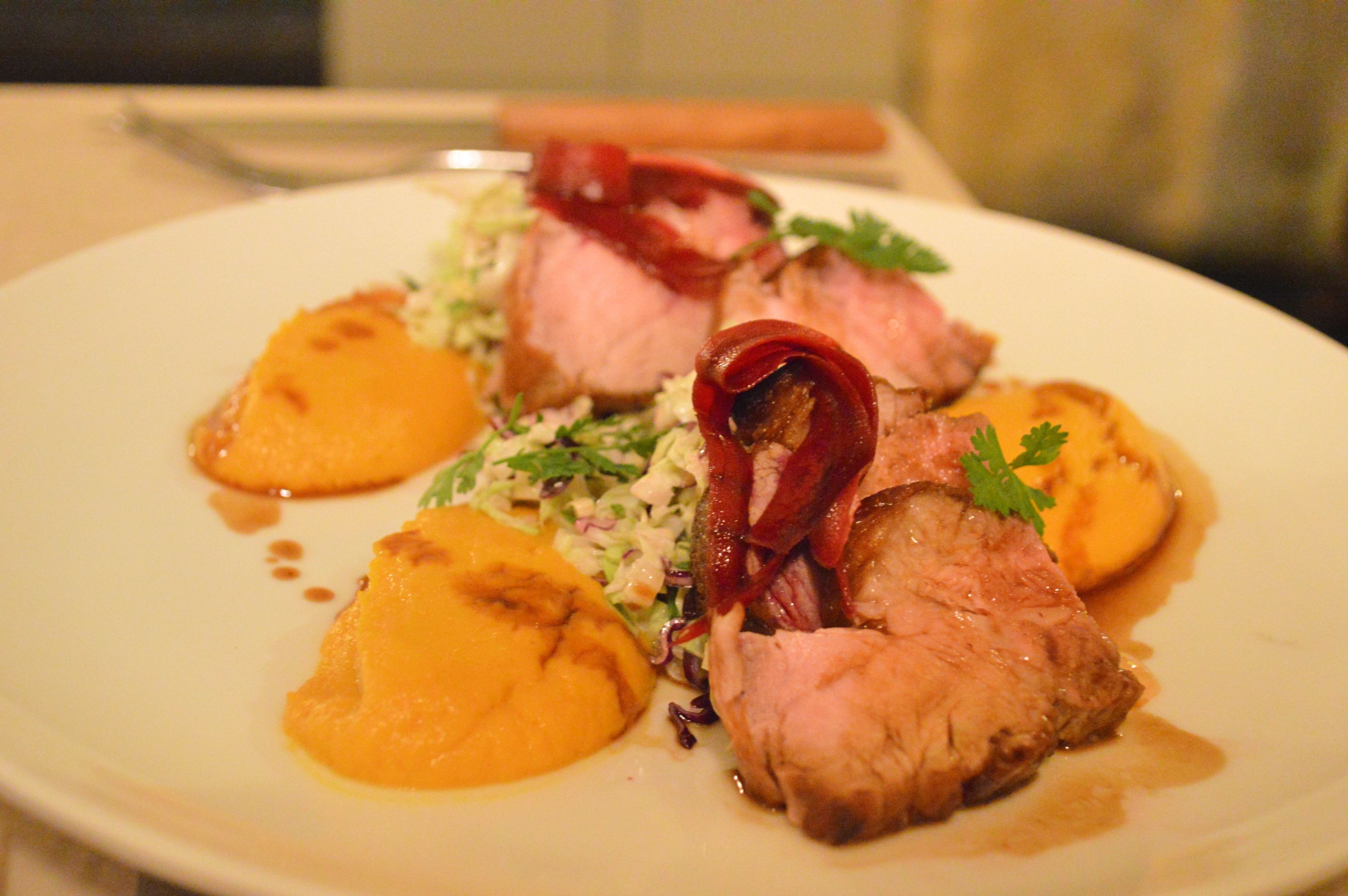 ♥ Echine de cochon abiota fumée, purée de carottes aux épices, salade de choux (20 €)