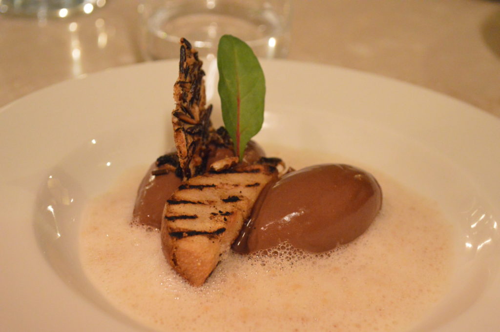 ♥ Crémeux chocolat Guanaja, poires, riz soufflé, émulsion au poivre (9 €)