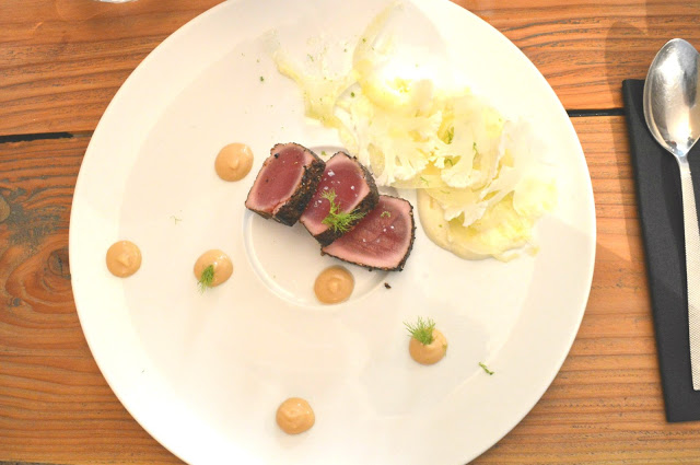 En entrée, Tartare d’espadon au poivre et aux agrumes