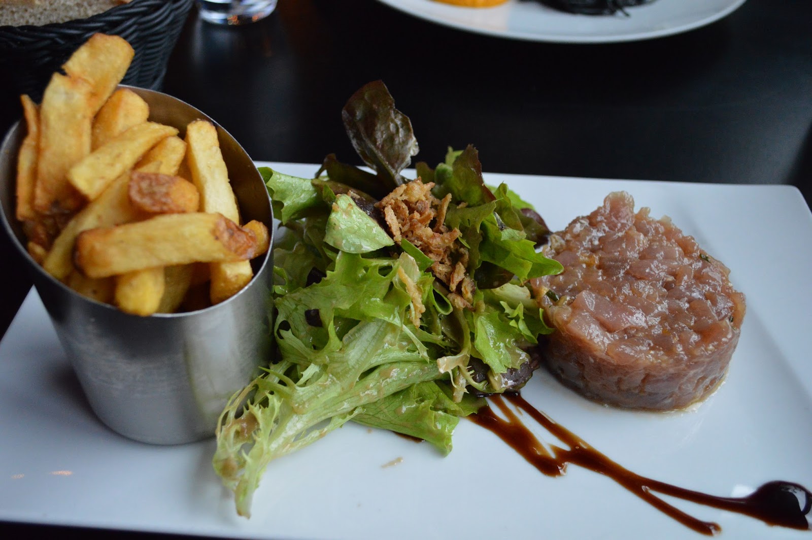Exemple? Filet de lieu, sauce curry, linguine à l’encre de seiche. Frais et vraiment bon !