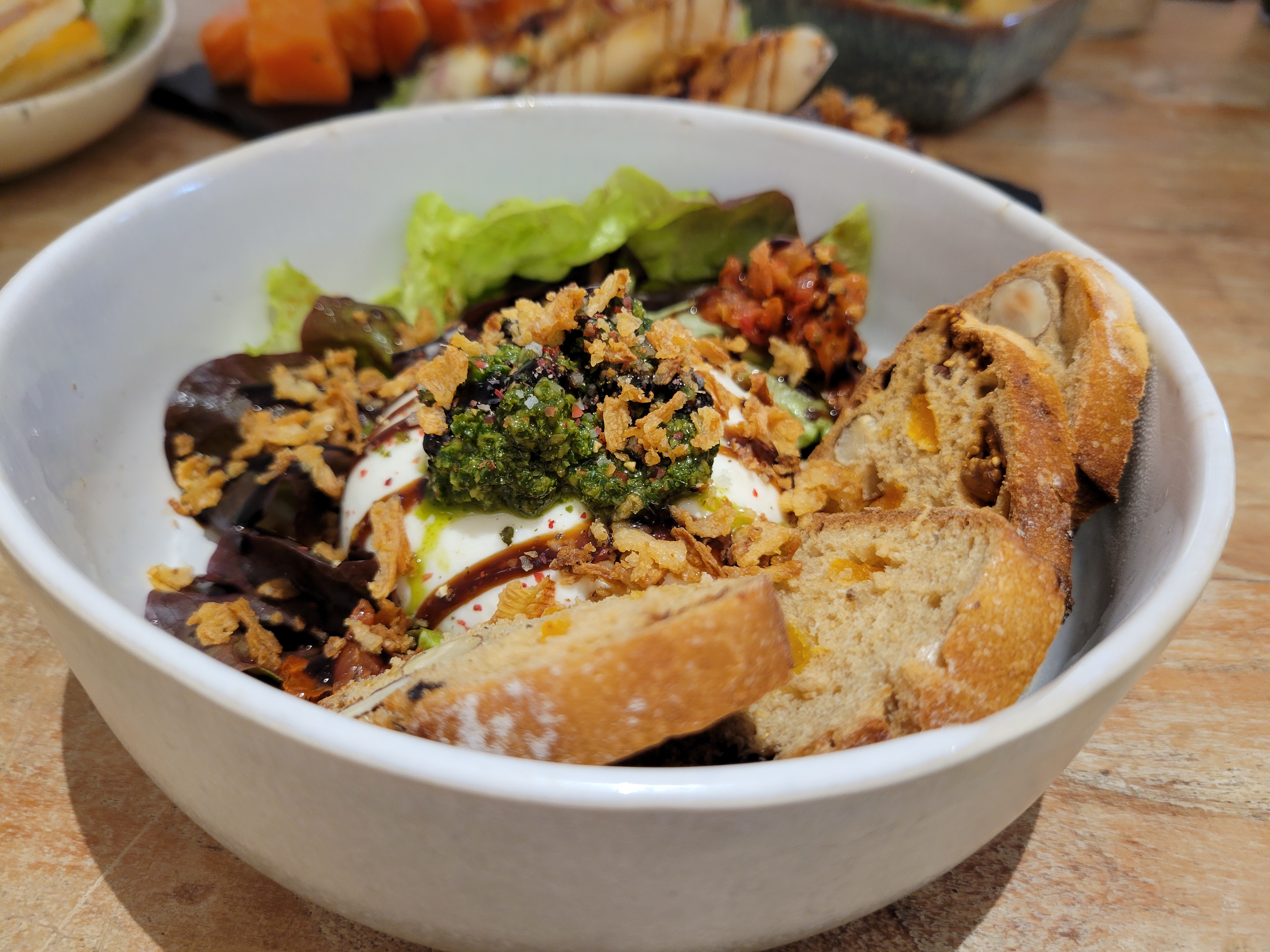 On a adoré la salade estivale vraiment fraîche avec des goûts qui pètent en bouche (burrata, mesclun, melon, bresaola, magret fumé, pignons, croutons) et le pavé de thon mi-cuit, un plat haut en couleurs avec thon, chorizo, aubergines, poivrons, patates douces, courgettes.