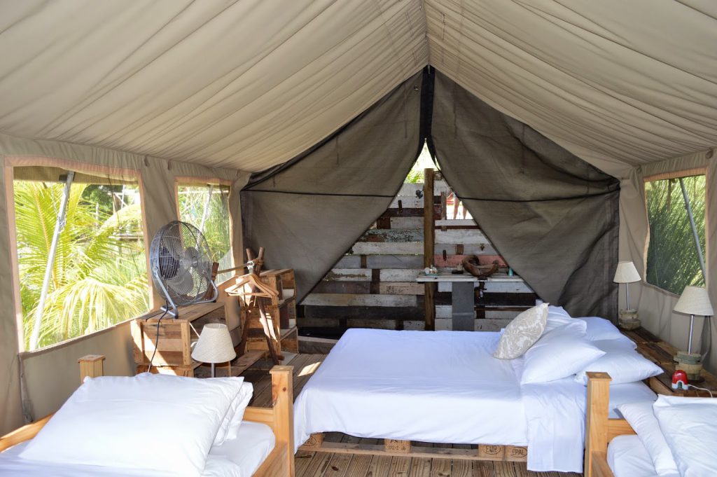 Les tentes sont composées de 3 lits très confortables, dont un double : on peut donc y loger à quatre.