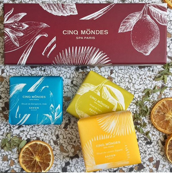 Si vous avez l’habitude de tester des spas vous devez sûrement connaître la marque Spa Cinq Mondes. La marque s’est inspiré de ses eaux fraîches emblématiques (signées par des parfumeurs de renom) pour créer un coffret de savons aux fragrances délicieuses ! D’ailleurs on garde l’odeur du savon sur la peau plusieurs heures, de sorte que cela remplace un “vrai” parfum ! Ces parfums naturels sont vraiment mixtes : notes de bergamote et bois de gaïac, vanille, huiles essentielles etc. Donc un cadeau pour hommes et femmes!