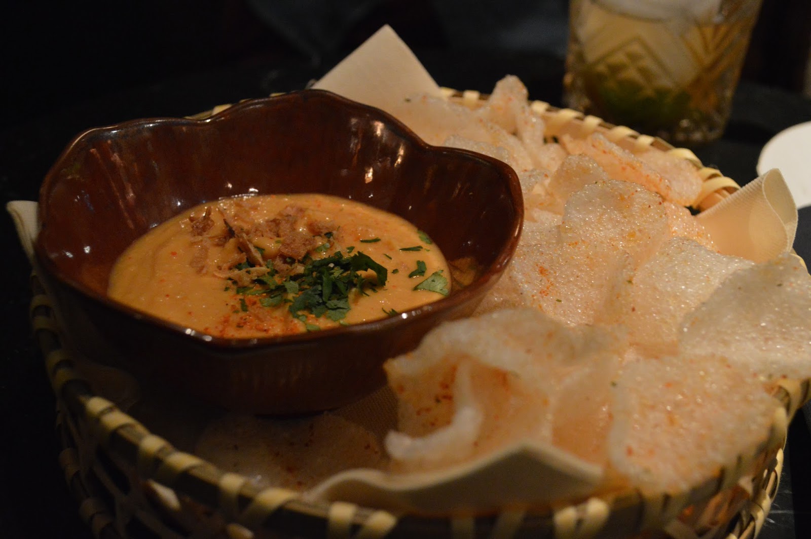 – le humus thaï à 4€ : épicé, servi avec des chips de crevettes (une proposition originale)