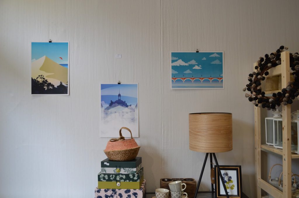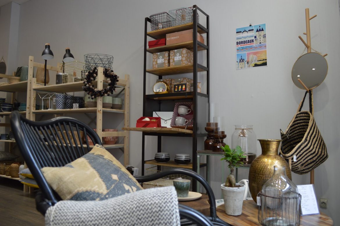 De chaque côté du magasin, des étagères remplies de bougeoirs, vaisselles, planches à découper, vases. Au centre des tables couvertes de petits objets déco (pour Noël notamment) et ustensiles pour la cuisine. Et un peu partout, des coussins, tapis et autres merveilles qu’on a envie de collectionner ! Au mur on retrouve, petite fierté personnelle, notre marque d’affiches made in Bordeaux “Les Instantanés Bordeaux”.