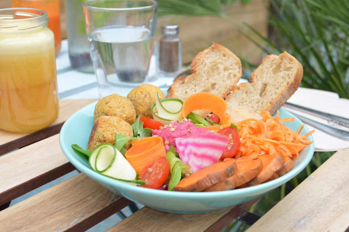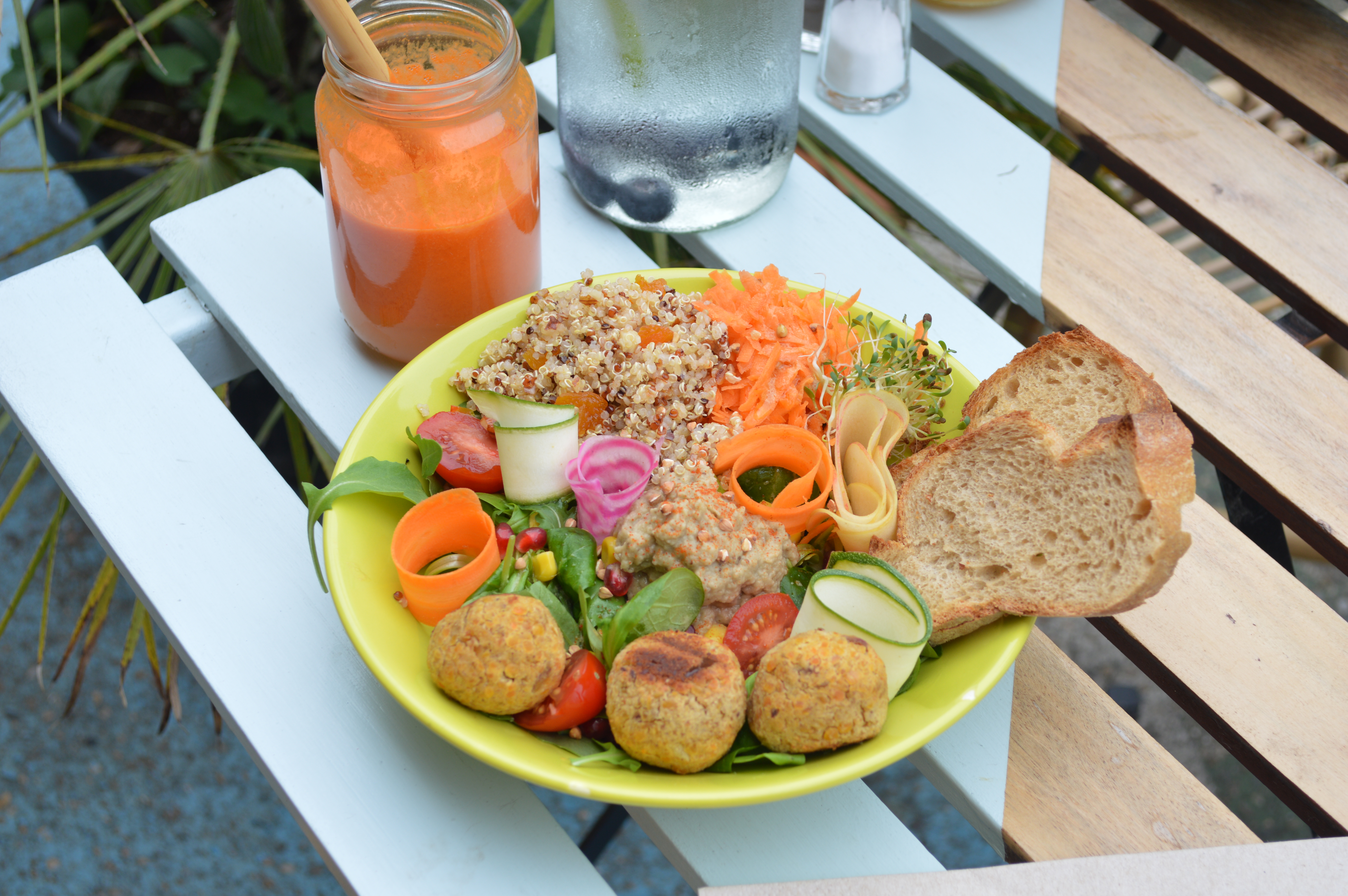 En plat je vous recommande le Corail Bowl à 12€. Ce jour-là il était composé de boulettes de lentilles corail, quinoa aux fruits secs, baba ganoush, crudités et légumes grillés. Mama mia ! Un délice !!!
