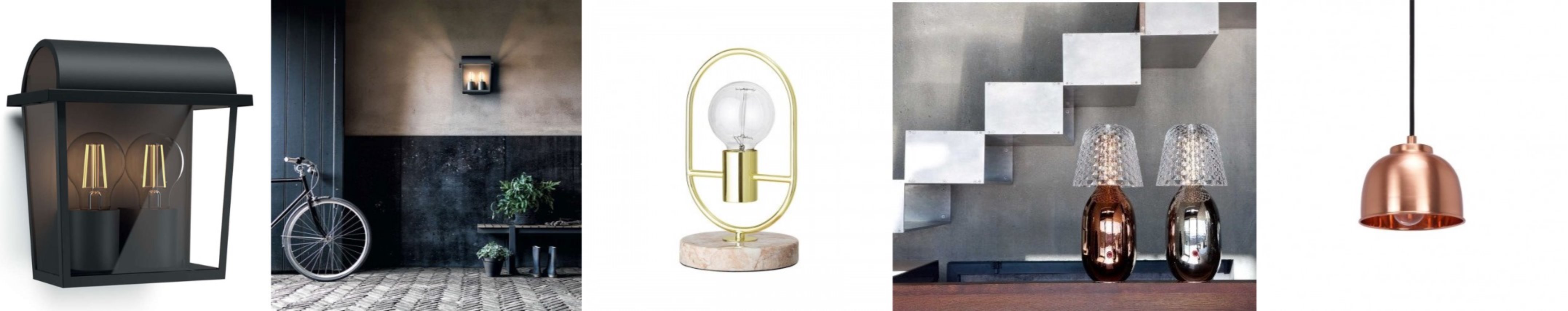 De gauche à droite : lampe d’extérieur Philips à 40 € (sur les deux premières photos), lampe de table Bloomingville à 145 € , lampes Baccarat à 3190 €, suspension micro dôme Voltex Sélection à 69 €.