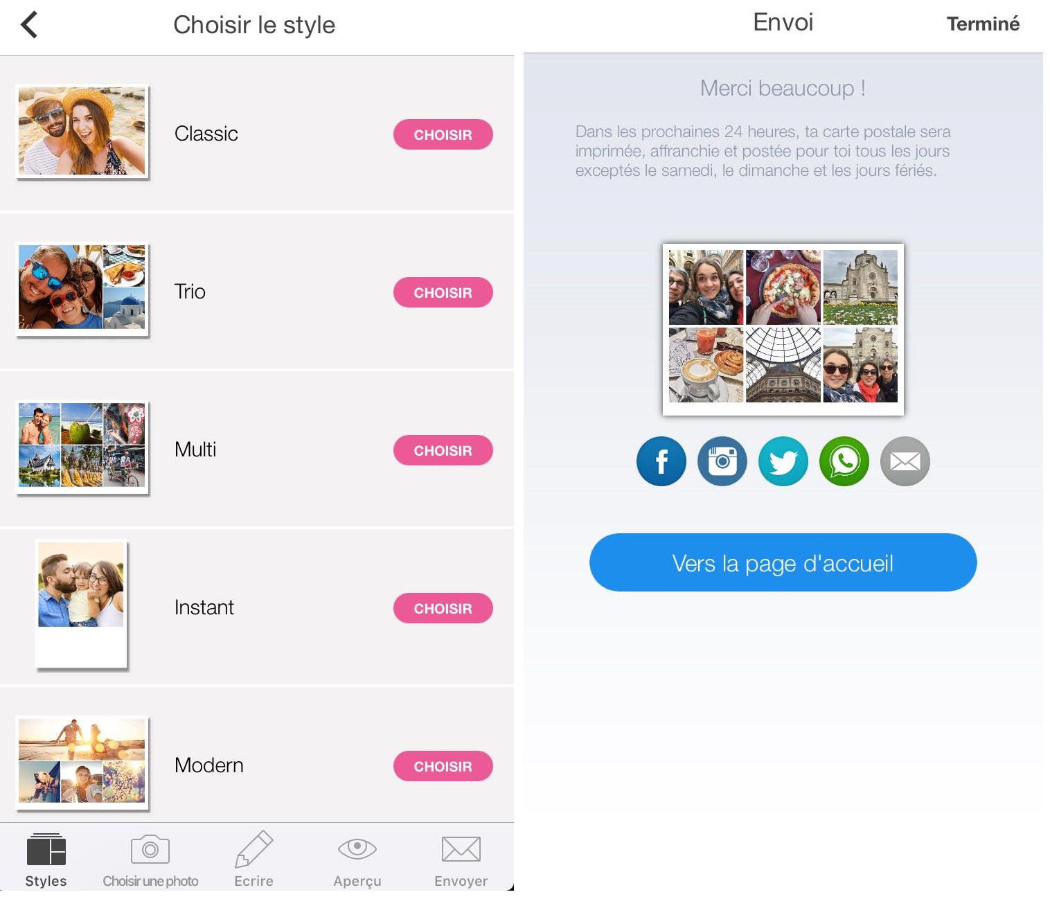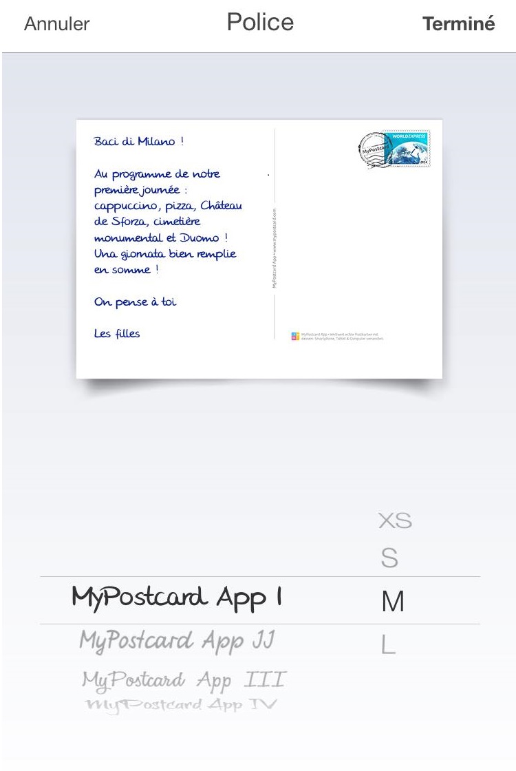 Et oui, sur l’appli My Postcard, on créé sa carte, on entre l’adresse du destinataire, on paye et basta !