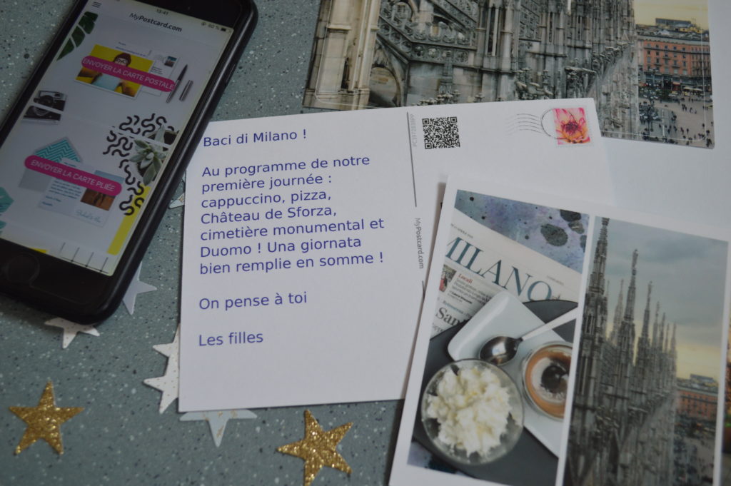 Lors de mon récent voyage à Milan j’ai pu tester My Postcard une application vraiment chouette qui permet de personnaliser ses cartes postales, mais aussi imprimer des cartes de voeux, des tirages photos. Pour ma part c’est vraiment l’aspect carte postale de vacances qui m’a séduite.