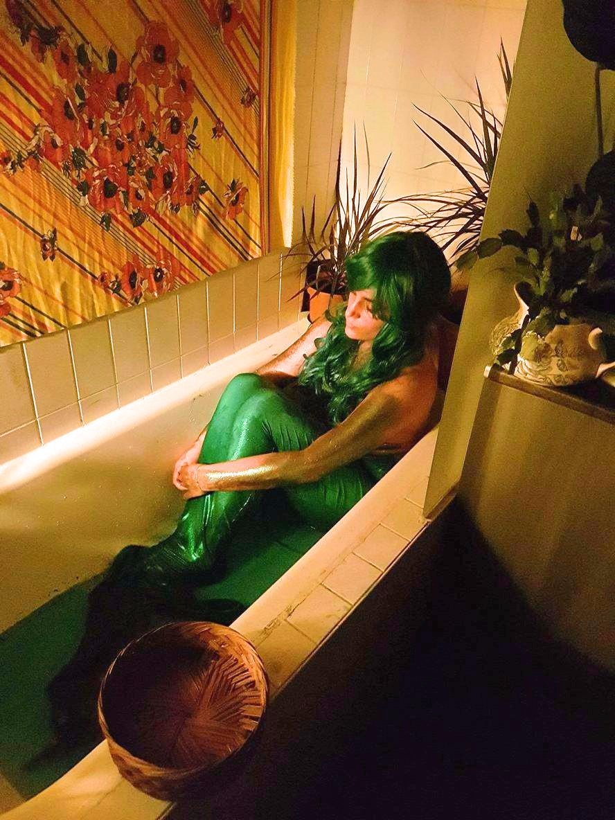 Clou du spectacle : on parvient à ouvrir la dernière pièce qui nous donnera l’ultime indice. C’est une salle de bains et on découvre non seulement une jungle (plantes, bruits d’animaux, chaleur) mais aussi une baignoire dans laquelle se baigne… une sirène ! Là, vraiment, on croit halluciner ! La fille joue très bien son rôle, ne nous parle pas, ne rigole pas (ce qui est difficile dans la mesure où nous étions pliées en deux et abasourdies à la fois).