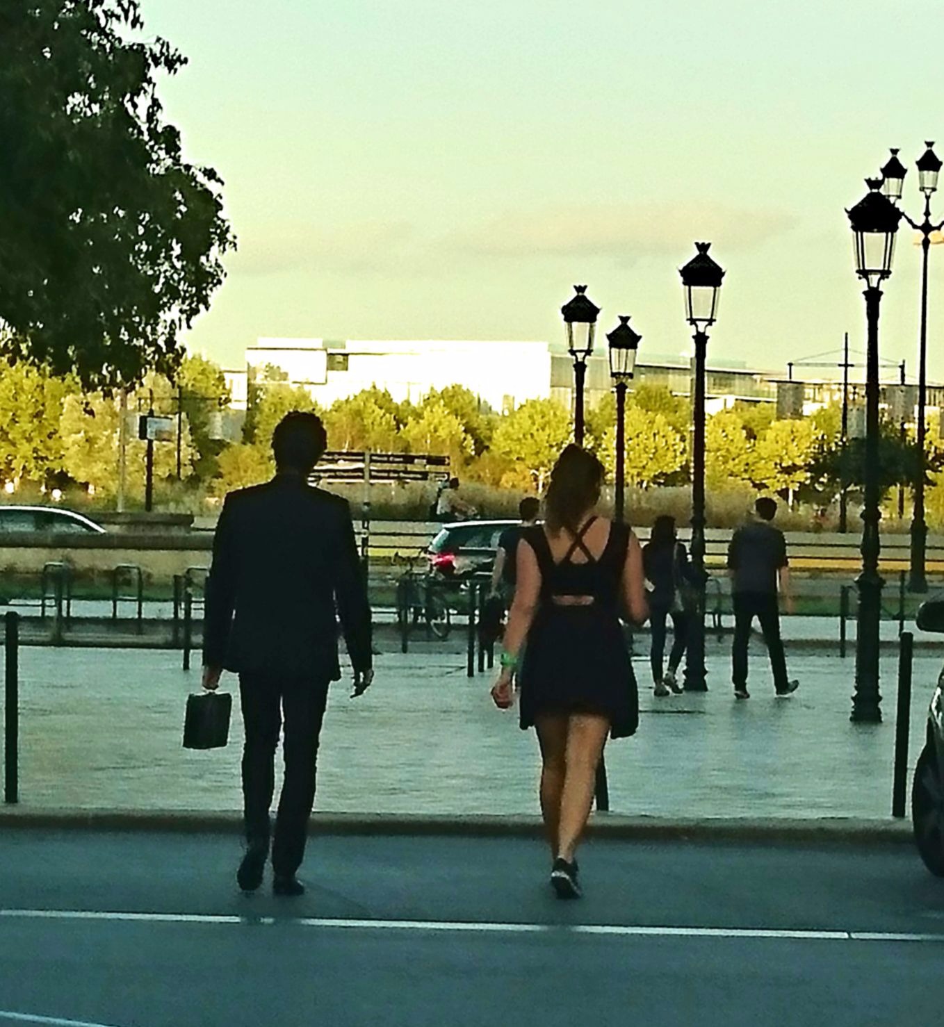 Bref en résumé : quelques jours avant la soirée j’ai reçu des instructions par mail nous donnant RDV Place de la Bourse sur un banc, à une heure précise. Sur place un homme en costume et lunettes noires s’est approché de nous et nous a donné une valisette sans rien préciser puis est parti en courant ! Le ton était donné ! Nous avons donc ouvert la valisette et découvert des accessoires et indices qui nous ont mené à un autre banc sur lequel était fixé un autre indice… qui nous menait à un autre endroit de la ville etc. etc ! Nous avons arpenté Bordeaux d’indices en indices pour finalement arriver vers Gambetta et se faire kidnapper par ce même homme qui nous avait donné la valise ! Il nous a fait monter, les yeux bandés, dans une voiture conduite par une fille.