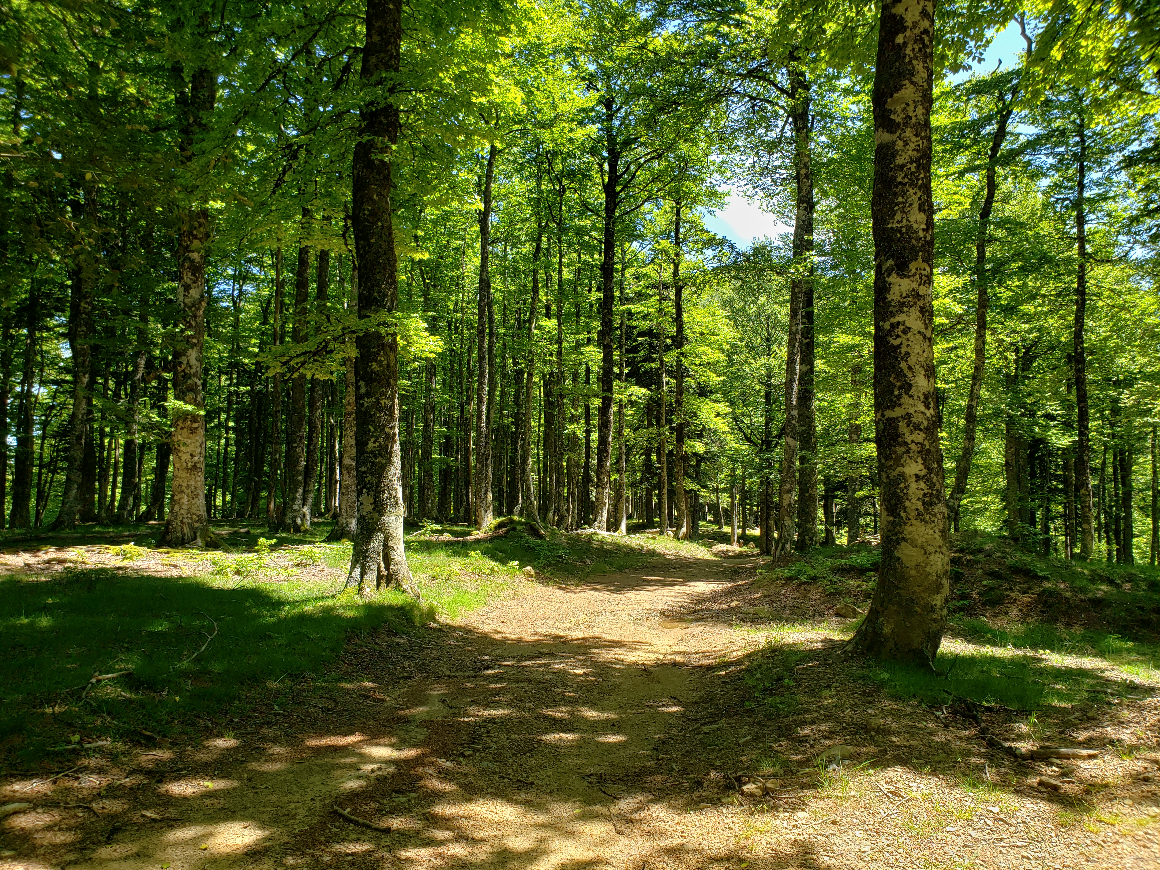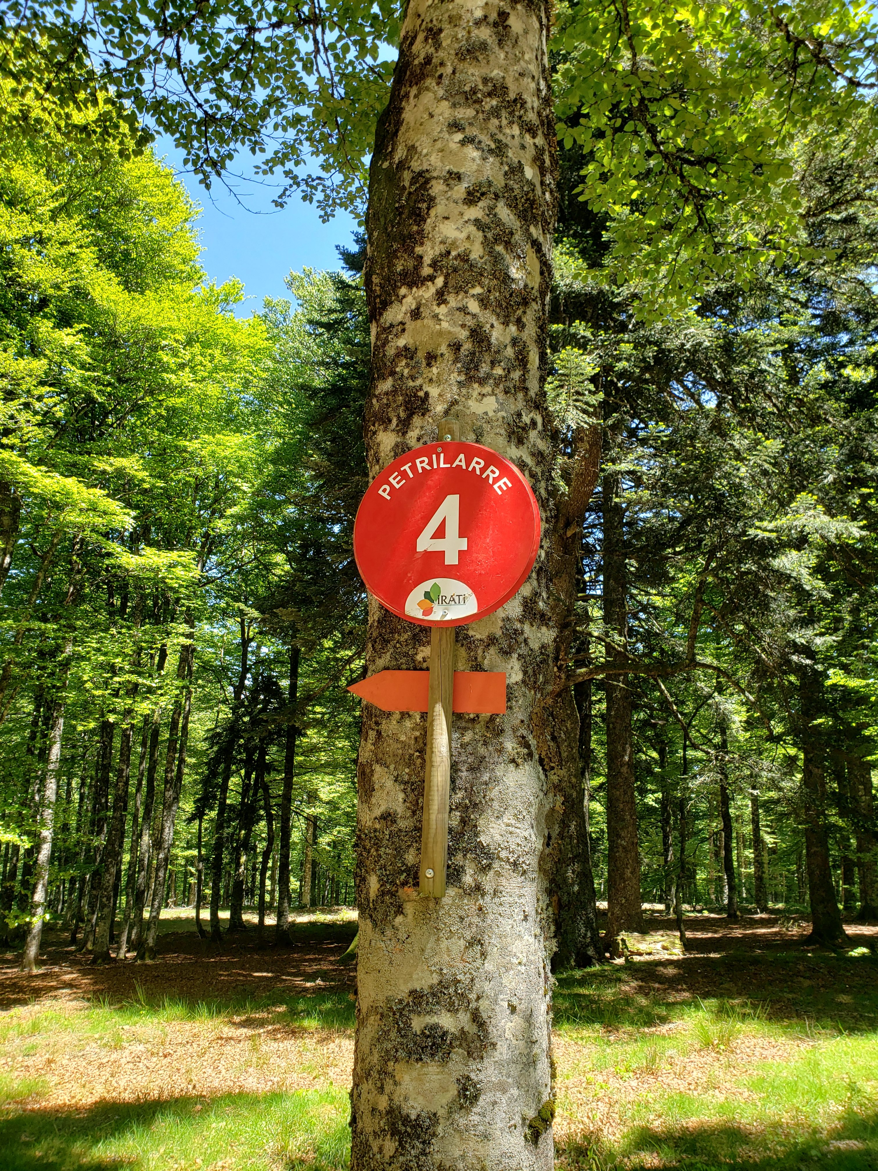 On entre ensuite dans un sous-bois pour 5 km de boucle. Le parcours se fait principalement à l’ombre d’immenses arbres en tous genres, bouleaux, hêtres, sapins, chênes. Ce n’est pas pour rien que la forêt d’Iraty est la deuxième hêtraie-sapinière d’Europe (17 000 hectares environ).