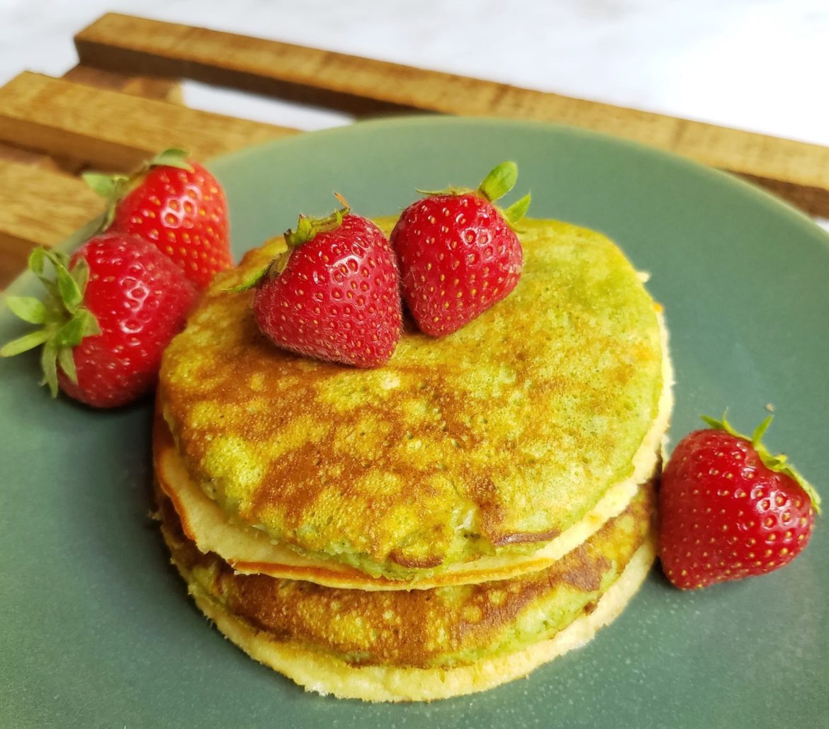 Comme tous les pancakes, vous pouvez les servir seuls ou accompagnés de pâtes à tartiner, confitures, miels, ou fruits frais. Personnellement je suis fan du mélange moringa – fraises.