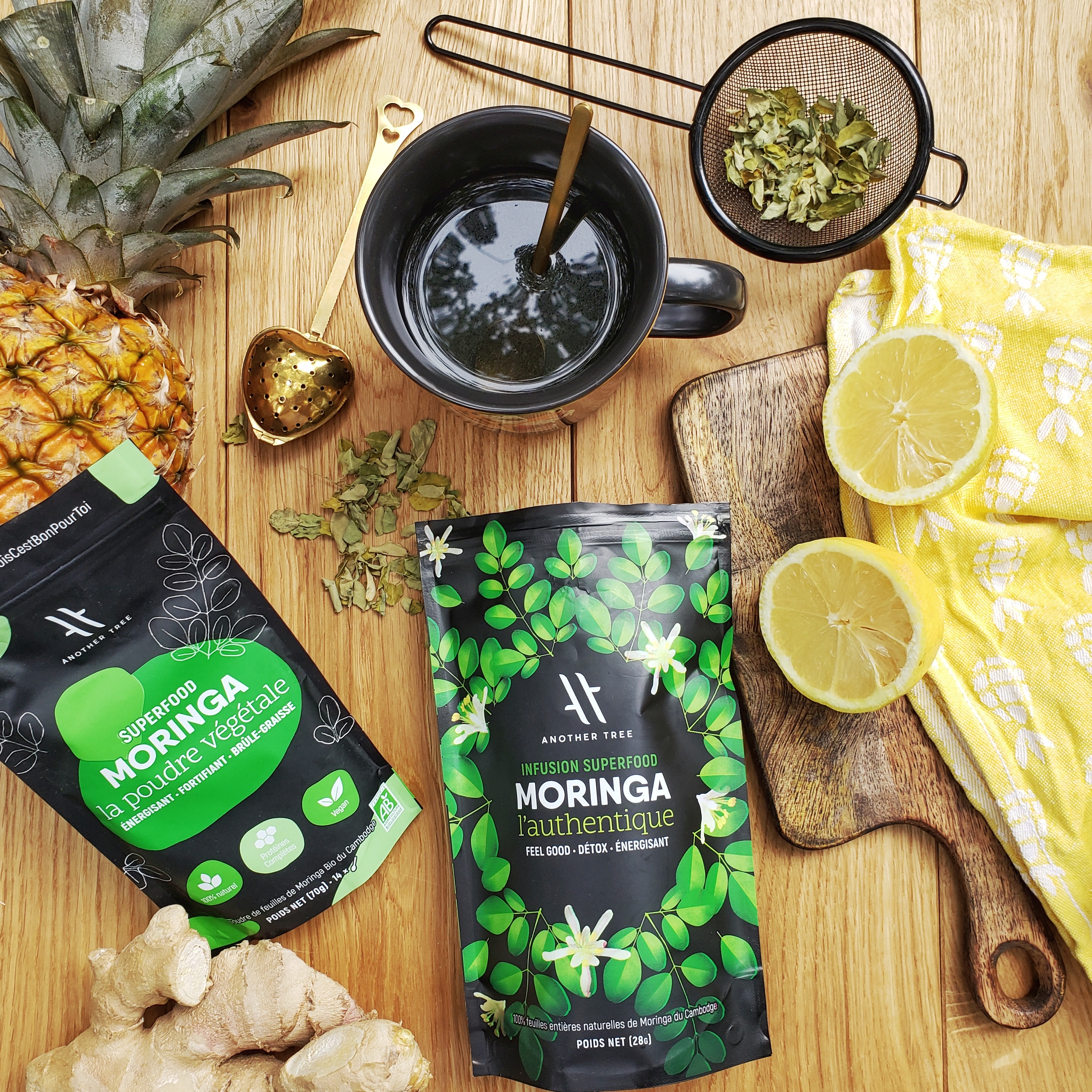 Je suis fan du moringa de la marque Another Tree, basée à Paris et qui a planté des centaines d’arbres au Cambodge, faisant ainsi travailler tout un village autour de la ferme de Monsieur Nero. J’aime particulièrement ce moringa car il est de super qualité, bio et récolté à la main. Cela fait toute la différence avec les moringas classiques que l’on trouve souvent en supermarché : les bienfaits de ces feuilles sont préservés avec une récolte et un traitement soignés. Il est donc important de savoir quel moringa on choisit, sinon autant vous dire que cela ne sert à rien de consommer un superaliment qui a perdu la moitié de ces pouvoirs !!!