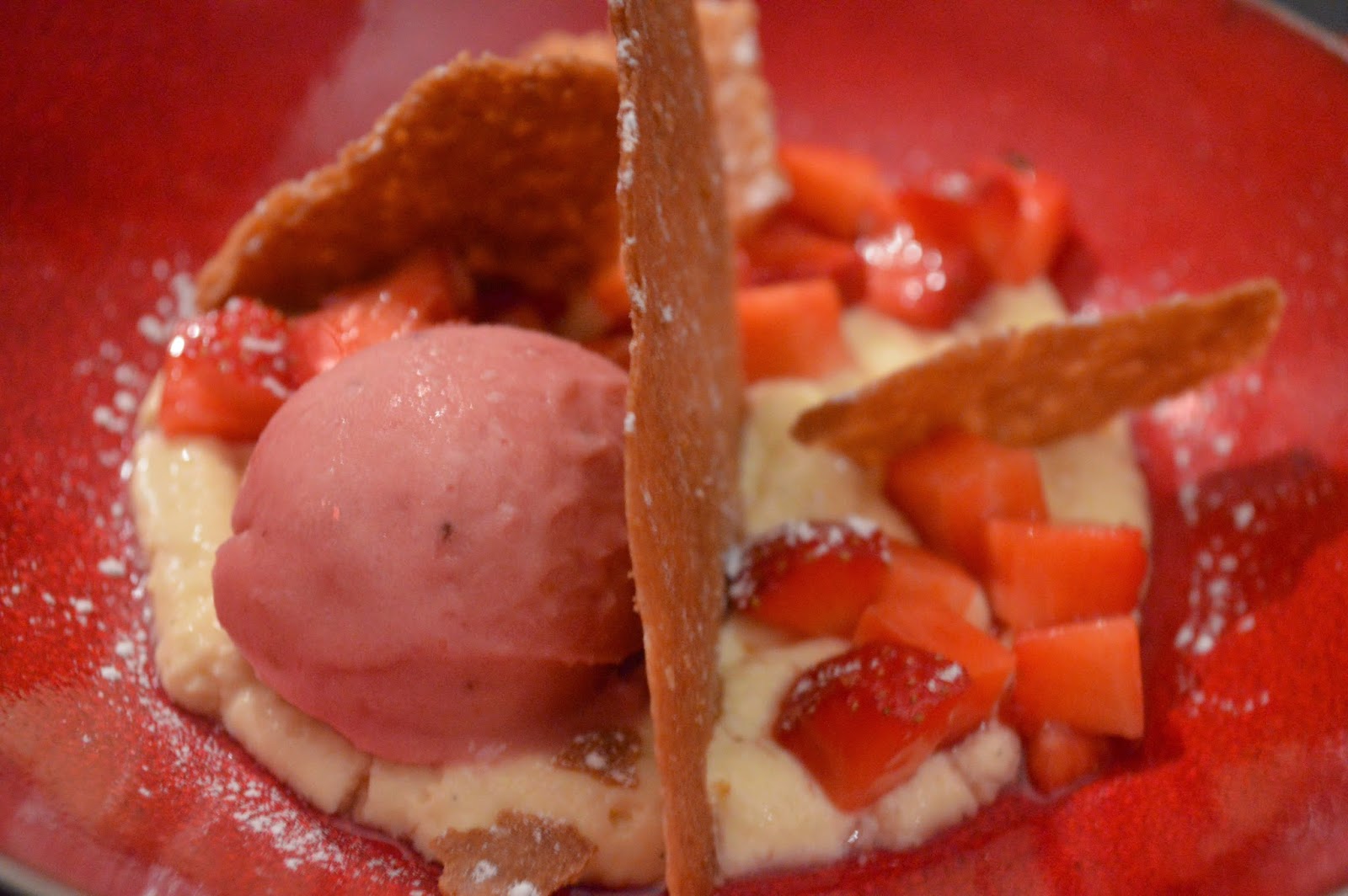 …et du dessert du jour, une tarte à la fraise déstructurée à la succulente crème pâtissière !