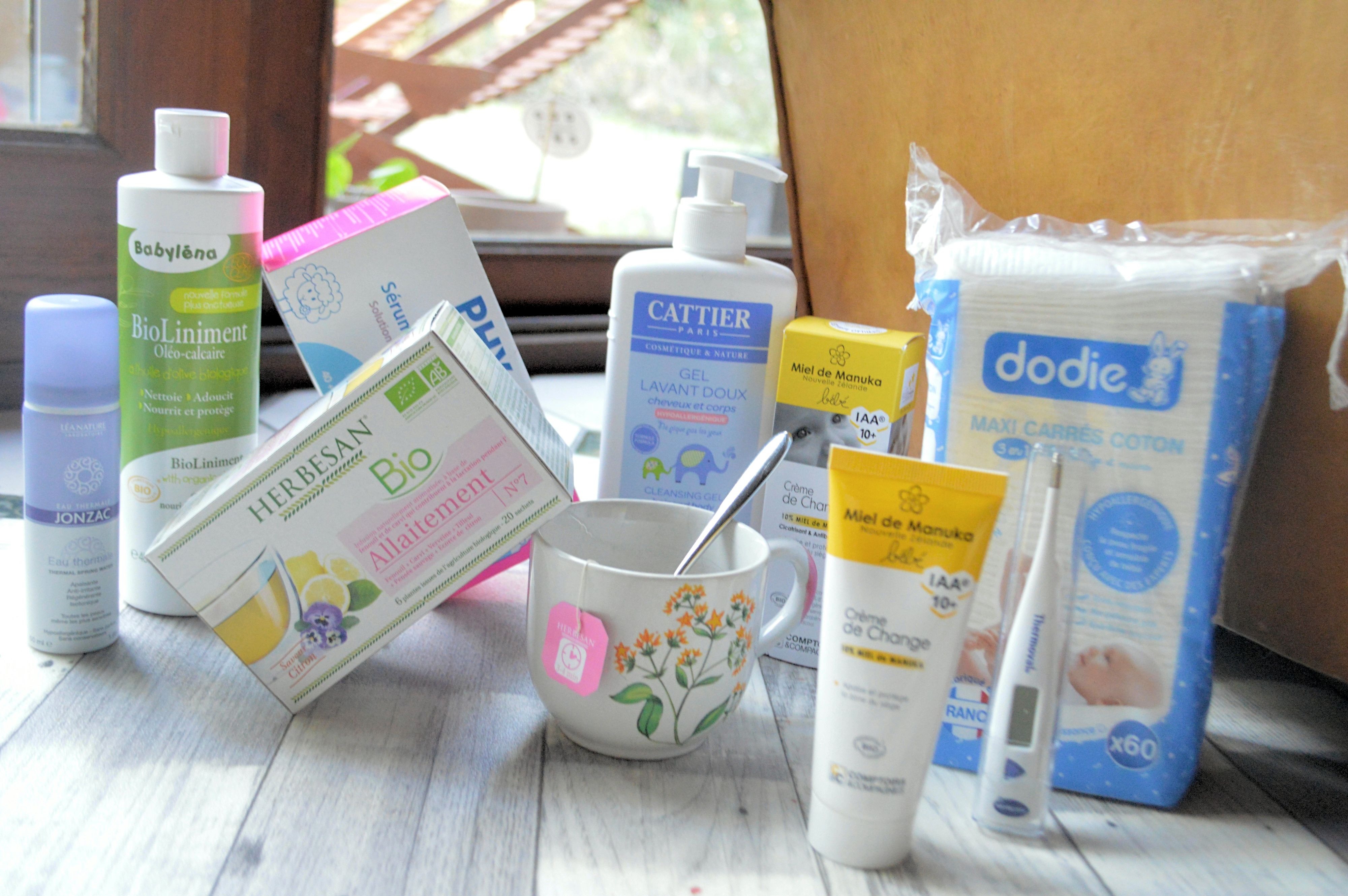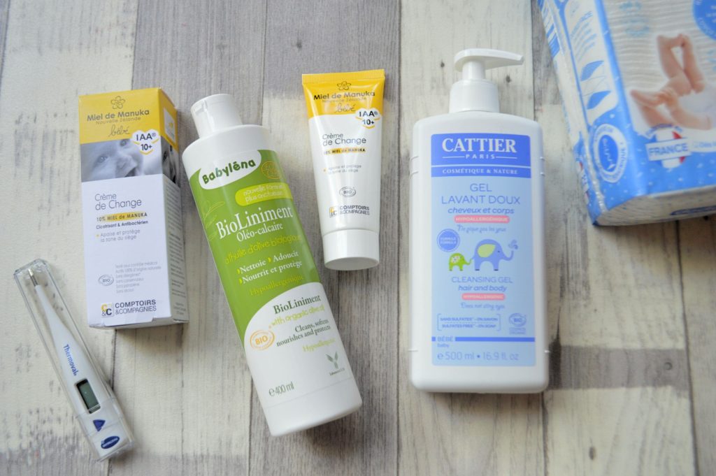 Entre autres j’ai acheté une crème bio au miel pour le change de bébé, de la marque Comptoirs & Compagnies que je ne connaissais pas du tout mais qui a bonne presse chez les mamans. Mais aussi un gel lavant doux spécial bébé de la marque Cattier (que j’adore) dont la composition est très clean. Les fameux carrés de coton prédécoupé, le thermomètre électronique, le vaporisateur d’eau thermale… bref j’ai coché toutes les cases de la liste de courses !