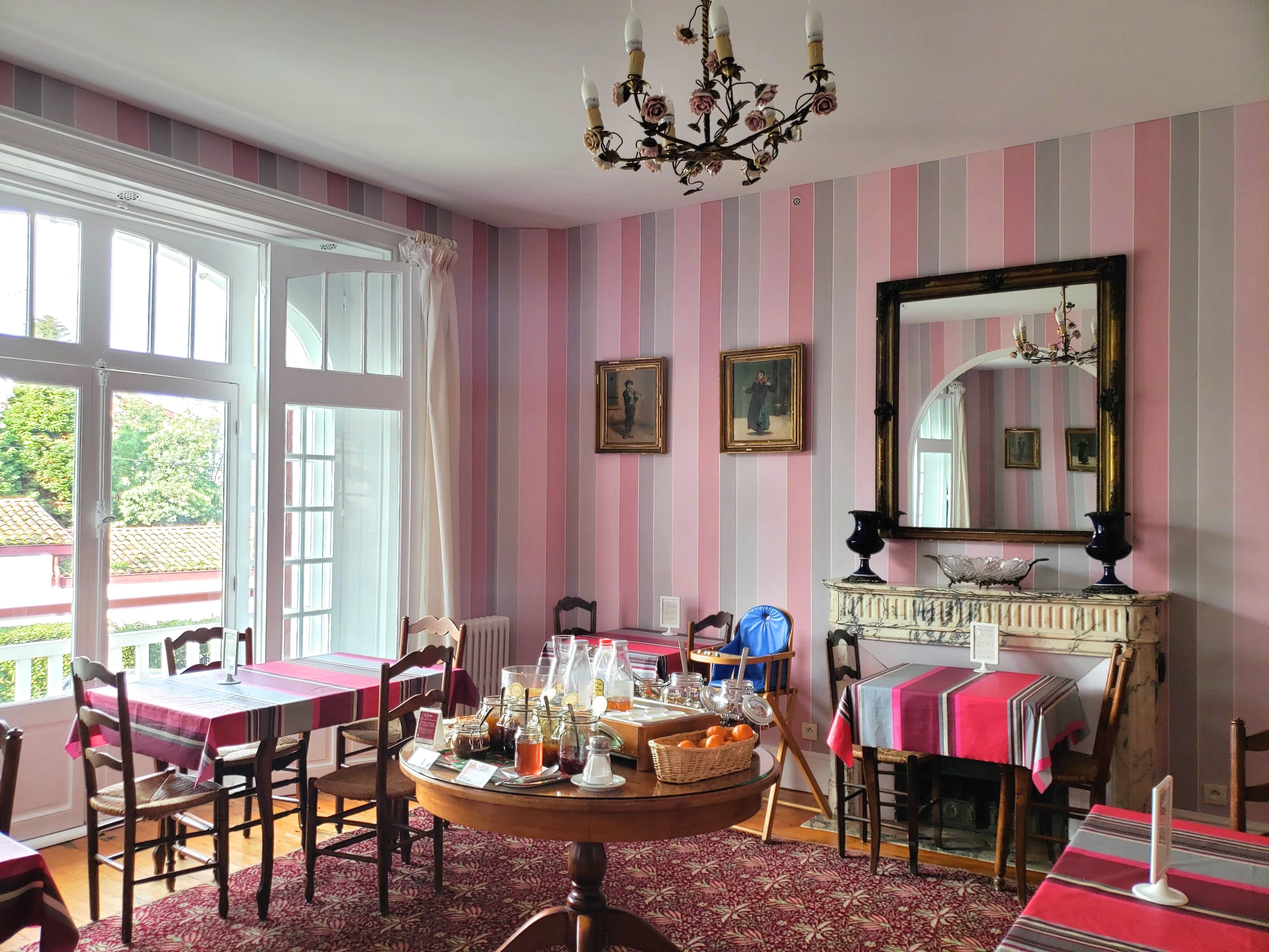 Un mot sur l’ambiance de l’hôtel. Ne vous attendez pas à des chambres standards aseptisées et à une décoration moderne. Les Goélands ont gardé ce charme un brin suranné des villas basques du début du XX° siècle : moquette dans les escaliers, meubles basques, grands miroirs rétros et cadres anciens. Un décor qui contribue à cette impression générale et agréable de ” comme à la maison”.