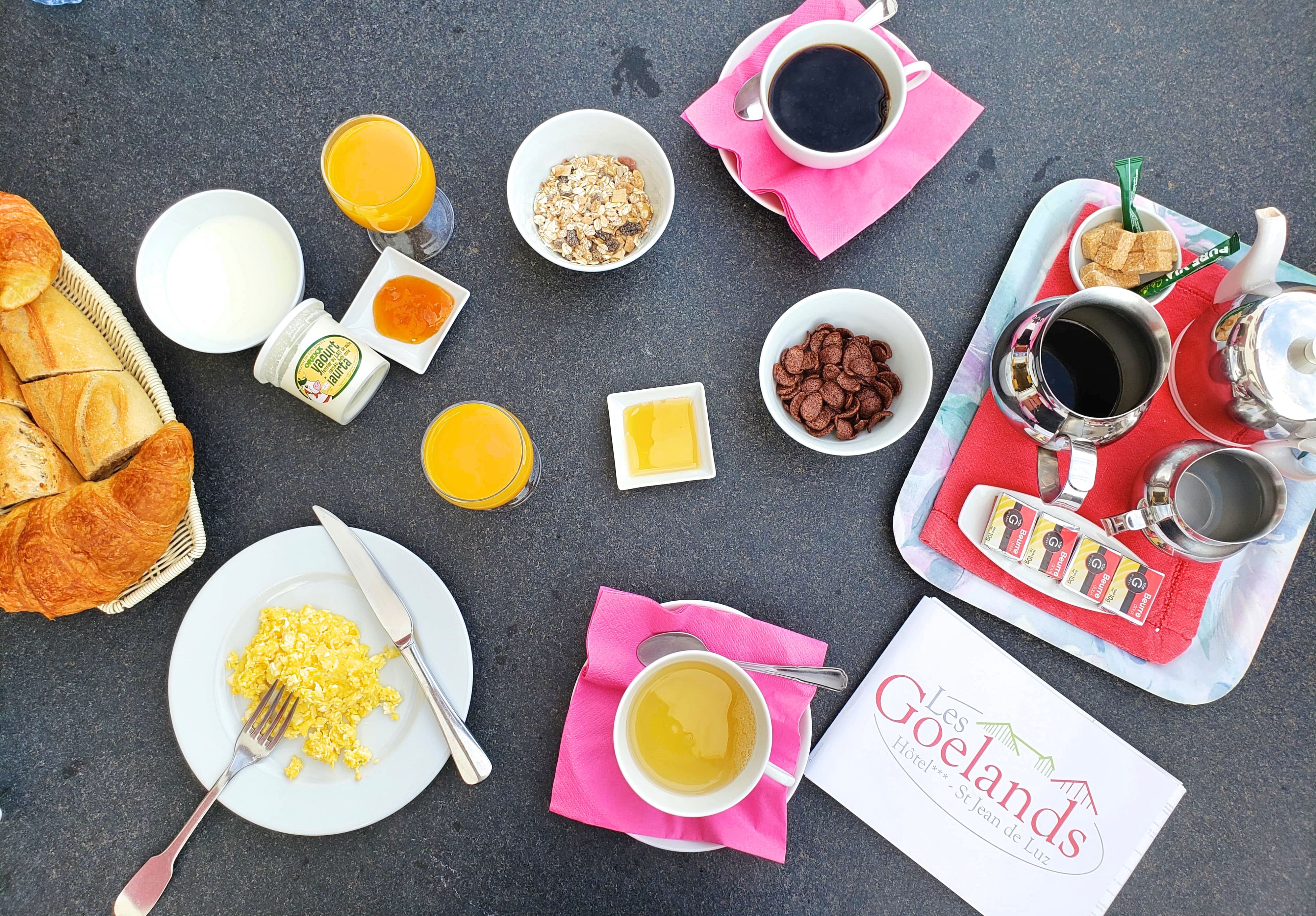 Autre bon point relevé dans cet hôtel : le petit-déjeuner. Un joli choix sucré (pâte à tartiner bio, gâteau basque, pain et viennoiseries de qualité, jus de fruits locaux etc.) que l’on peut agrémenter de gourmandises salées en supplément. Mais quand je dis supplément, on est loiiiin des prix pratiqués ailleurs. Ici vous pouvez ajouter de la charcuterie, des œufs (brouillés, coque, frits) ou du fromage (du Pays-Basque évidemment) pour 1 € seulement par produit !!! Imaginez un mix fromage, jambon de Bayonne et œufs brouillés pour 3 € ! Top, non ?