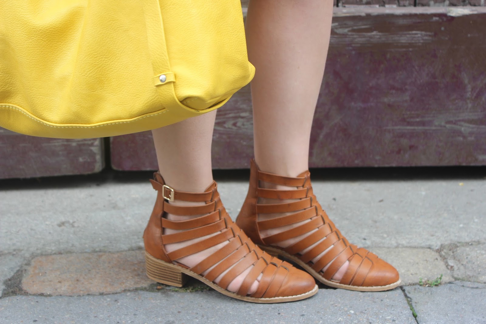 Très sympa cette tenue estivale. J'aime beaucoup l'imprimé de la jupe et tes sandales façon boots d'été 😉