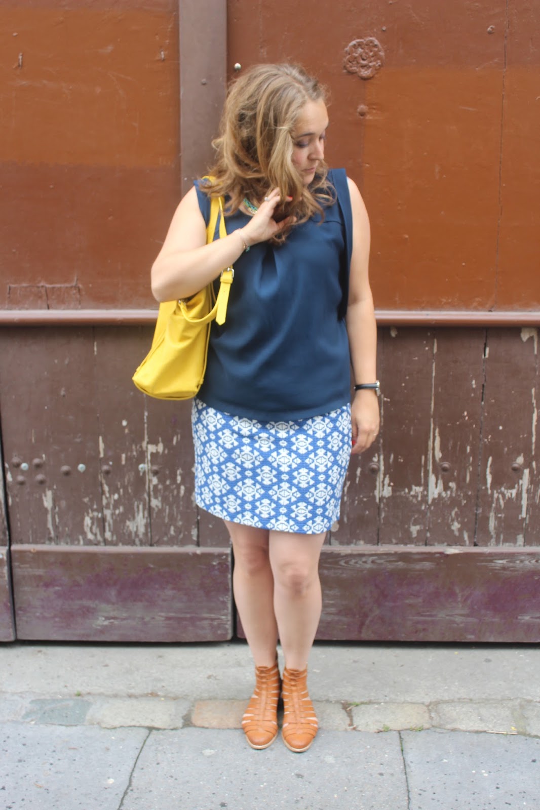 Tu te sens bien et surtout ça te va bien ! L'association des tons est nickel et effectivement le sac apporte une vraie note de pep's !