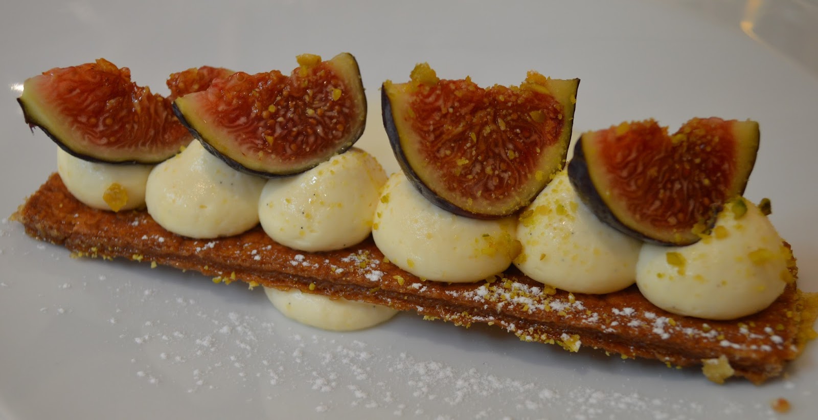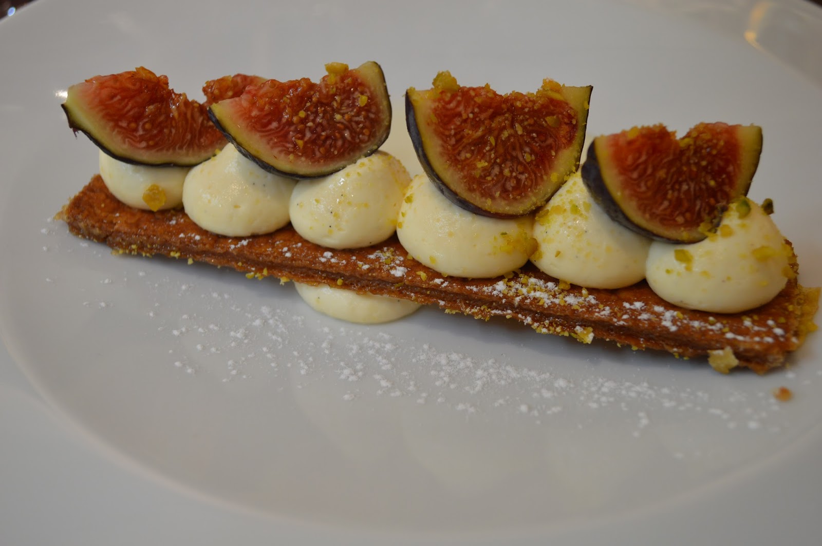 Dessert : Craquant de figues fraîches et lait d’amande douce en dessert.