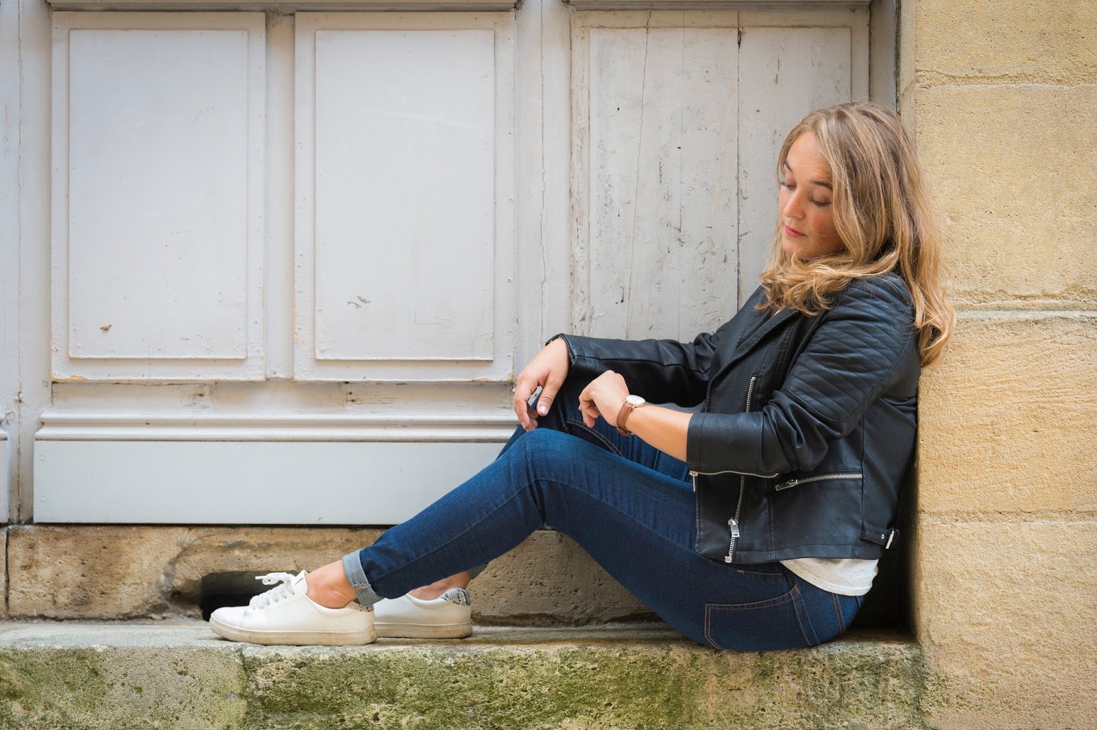 On commence par la pièce maîtresse de ce look, un basique rock : le perfecto. Ici c’est une imitation cuir franchement réussie de la marque Follow me, qui a ouvert une boutique au coeur de la Promenade Sainte Catherine à Bordeaux. J’ai déniché cette pépite pour 39.95€ à peine ! Depuis je porte le perfecto aussi bien sur une tenue urbaine comme celle-ci que sur une blouse chic en soirée. Indémodable et passe-partout !