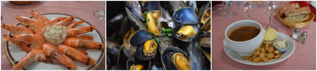Mais on trouve aussi des gambas bien fraîches servies avec un aïoli maison, des moules marinières (en saison), d’excellents poissons (à goûter avec leur délicieuse purée, maison aussi of course).