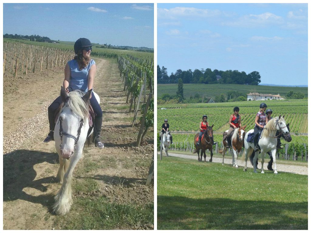 Débutant ou confirmé, peureux ou Galop 5, tout le monde est accepté dans les balades de Charlotte de A Terre A Cheval ! Selon le niveau elle proposera pas, trot ou galop, dans un cadre absolument charmant : les vignes et châteaux du Saint-Emilion.